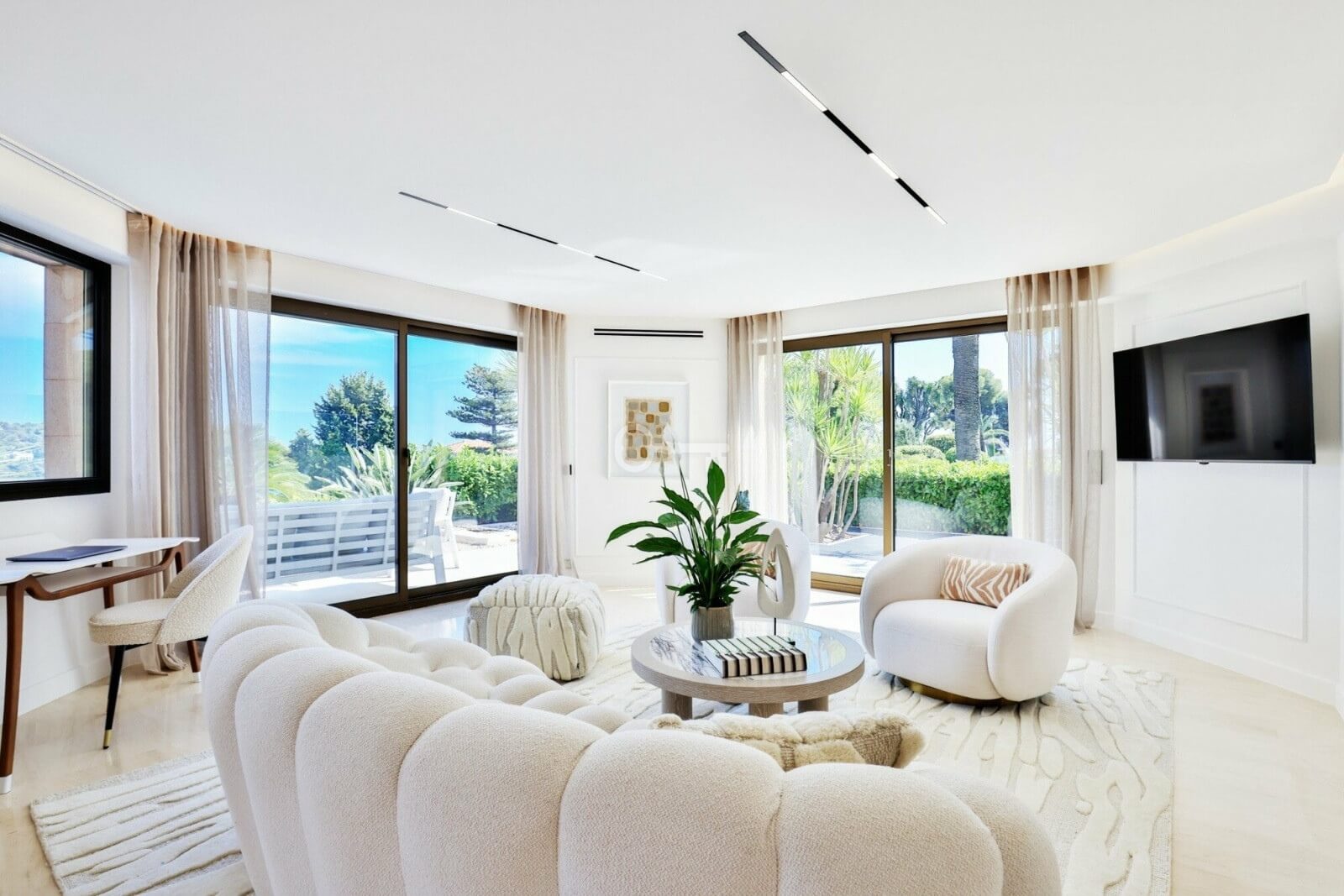 In one of the most prestigious, guarded residences on the Cap de Nice is a rare 4-bedroom apartment-villa, completely renovated with high-quality materials. The property offers 172 m² of elegant living space, complemented by a spacious terrace and a private garden of approximately 230 m². The view of Cap Ferrat gives every moment a unique Mediterranean charm.