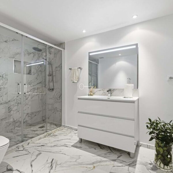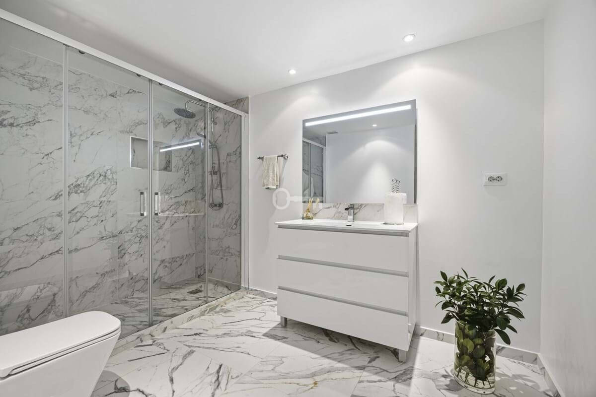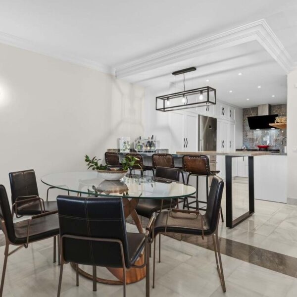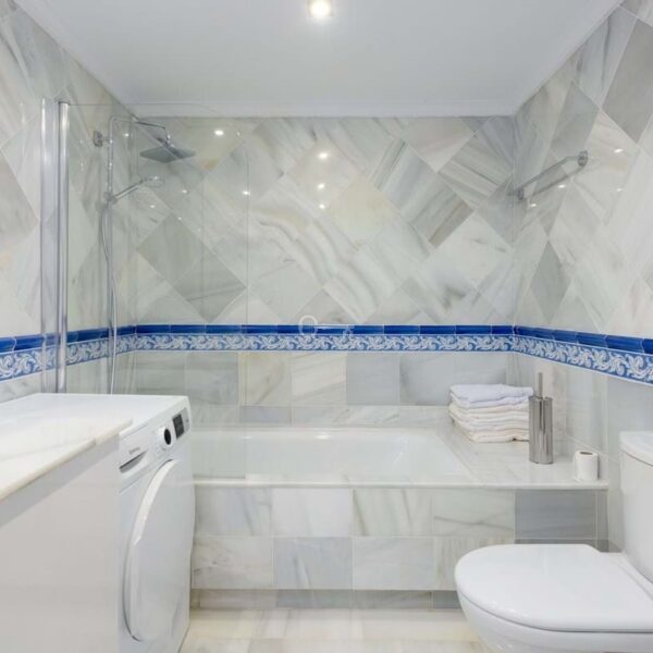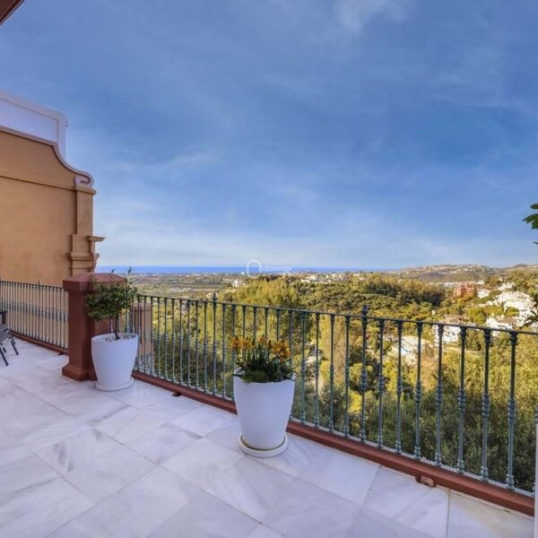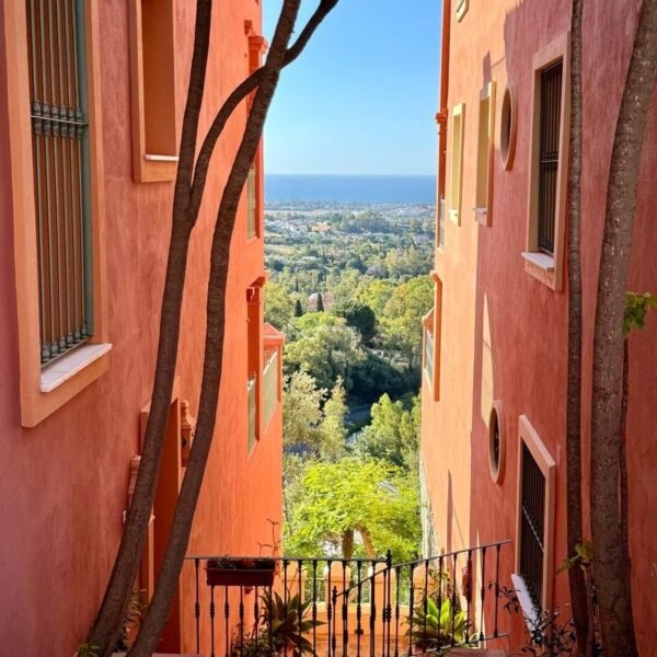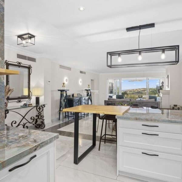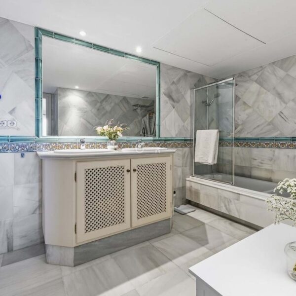 Inside, you’ll find two great size bedrooms each with ensuite bathrooms, including one recently refurbished. The light flooded & very spacious living and dining area opens onto a covered terrace with foldable soundproof windowsperfect for enjoying breathtaking sea and Benahavís hill views year-round. Beyond the covered terrace is the open terrace ideal for sunbathing, eating or chilling beneath the stars and lots of space for plants. As the apartment is west-facing position innumeral magical sunsets can be enjoyed here hroughout the year.