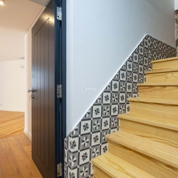 The thoughtfully selected materials aim to preserve the original character, featuring traditional Portuguese tiles and hydraulic mosaic flooring, vintage-style ceramics for kitchens and bathrooms, Riga pine wood flooring in keeping with the original style, a fully equipped kitchen with all appliances, thermo-acoustic insulated window frames, and air conditioning.