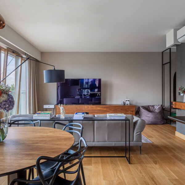 The apartment is located in the well-located Park Place apartment building on Wałowa Street. Thoughtful design and high standard make this property a great choice for the most demanding. The brilliant, panoramic view of the eastern part of Warsaw – along with the Old Town and the National Stadium – make this place even more attractive.