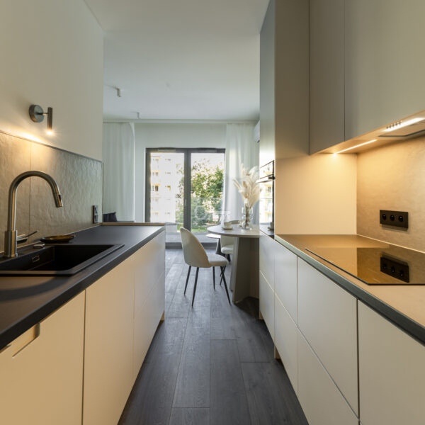 The apartment has been designed with attention to detail and optimal use of space. Interior finished in a modern, cohesive style.
