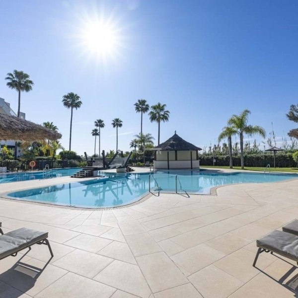 Bahía del Velerín is a prestigious community located between Marbella and Estepona. It boasts a beautiful pool area with a snack bar, lush tropical gardens, and 24/7 security. Set in a prime location, it offers access to one of the regions finest beaches.