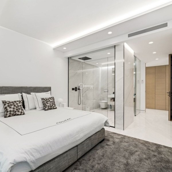 This space has been finished with the same high-end materials as the apartment and features a full bathroom, ventilation, and natural lighting.
