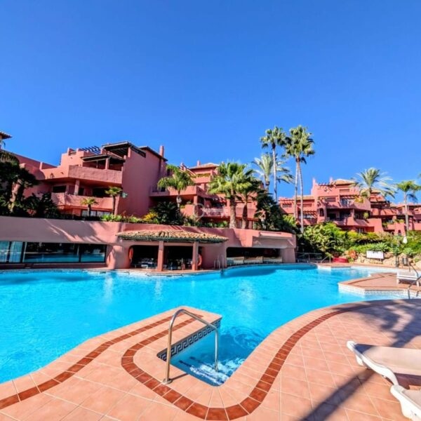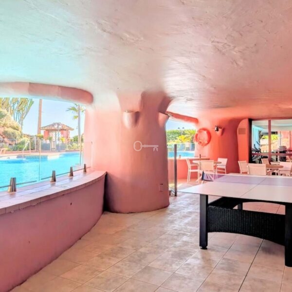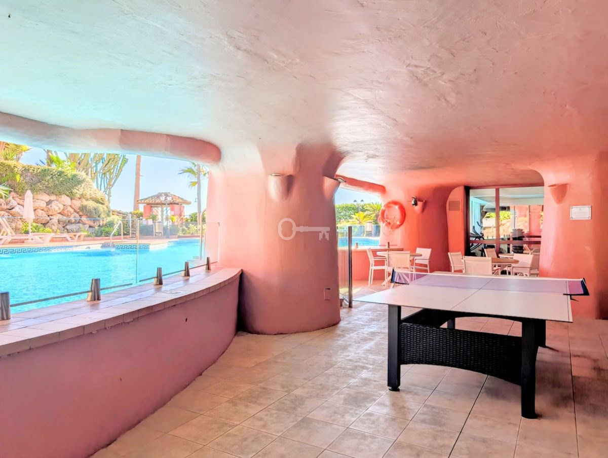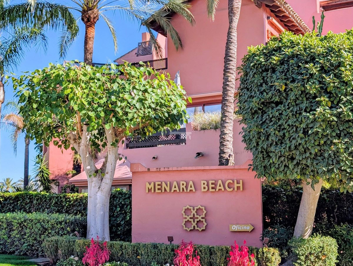 This beachfront complex – Menara – is surrounded by other exclusive complexes which all benefit from landscaped public park with ancient wathing tower. There are also several amenities at the walking distance such as well known restaurant Tikitano and some shops and a bar in nearby complex, more amenities can be found just a short drive from home. Estepona town is 6min drive from Menara and its easily accessible from Malaga Airport using AP-7 toll road.