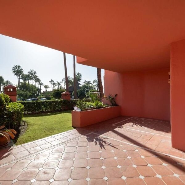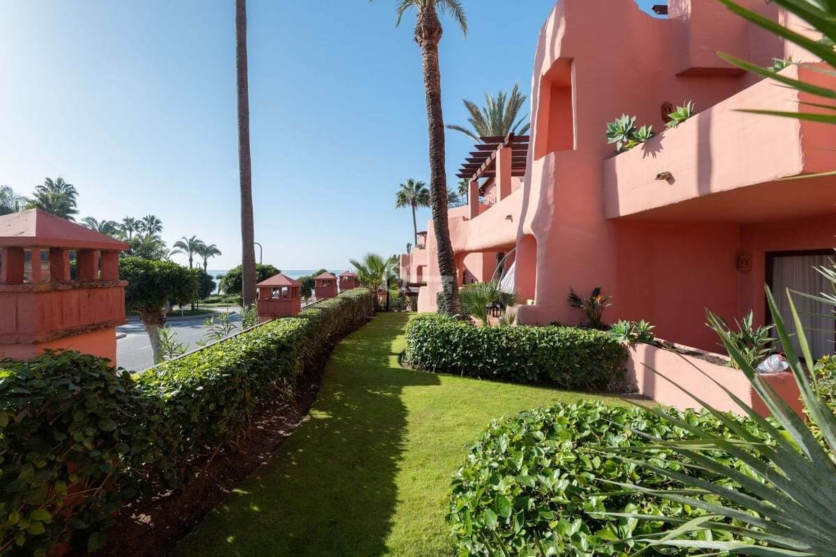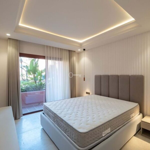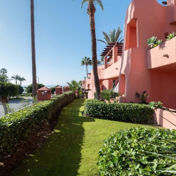 Situated in Cabo Bermejo, an exclusive frontline beach development positioned along the New Golden Mile stretching between San Pedro and Estepona, this recently refurbished ground-floor apartment boasts three bedrooms and two bathrooms, providing a sophisticated living experience within a secure, prestigious gated community.