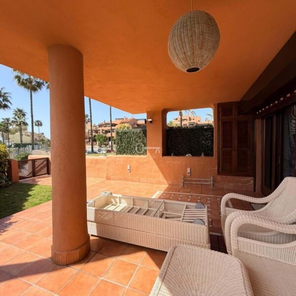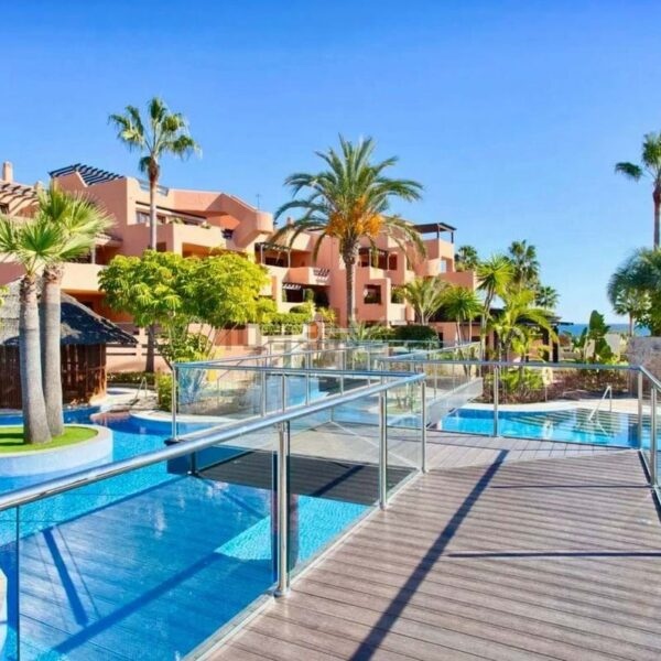 Beachfront complex. Ground-floor unit with three bedrooms and two bathrooms on Esteponas New Golden Mile, one of the most sought-after areas on the Costa del Sol.