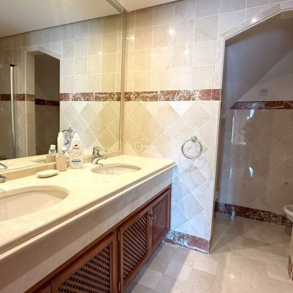 Upstairs, the lavish master suite awaits, complete with a French-style bathroom, walk-in dressing room, and access to two impressive private terraces with barbecue and solarium perfect for relaxing or entertaining in style.