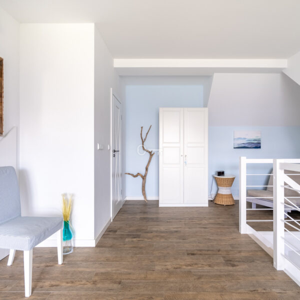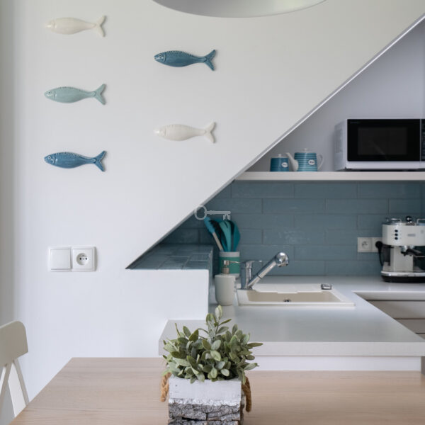 The two-story unit of 68.69 sqm is located on the top floor of the building, which we can reach by a quiet elevator. The apartment has a central sea view and a landscaped green area in front of the building. The whole finished with attention to the smallest details, completely equipped. Take a deep breath and relax – this interior offers a wonderful experience.