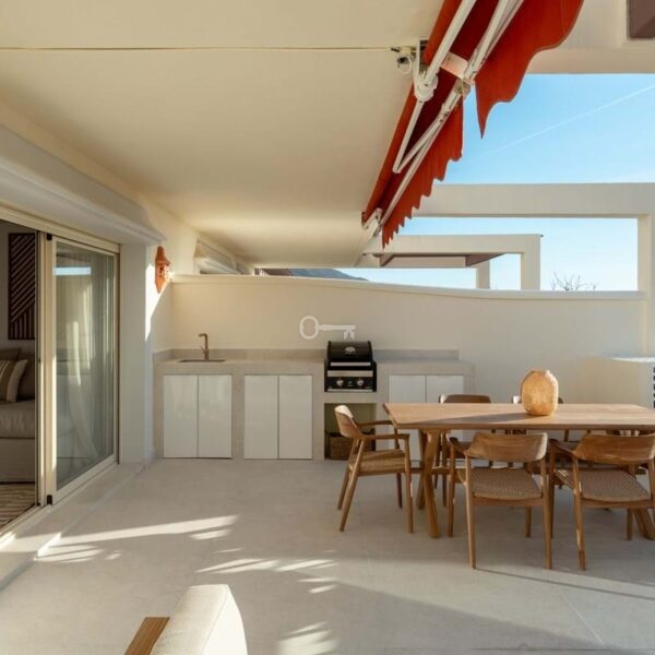 This stunning three-bedroom first floor apartment, located in the sought-after area of Nueva Andalucía, Marbella, offers an exceptional blend of etnic-Scandinavian, boho design, comfort, and elegance. Fully refurbished to an impeccable standard, the property boasts a bright open-plan living and dining space, thoughtfully created for both everyday living and effortless entertaining.