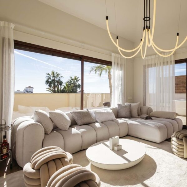 Welcome to The Sky Villa an exceptional triplex penthouse in Nueva Andalucía, Marbella. This unique residence seamlessly combines the space and privacy of a villa with the convenience of apartment living, elegantly distributed across three exclusive levels.