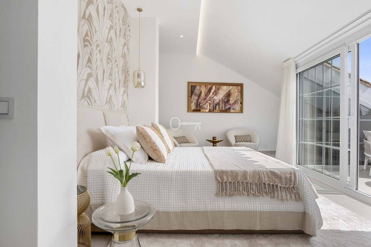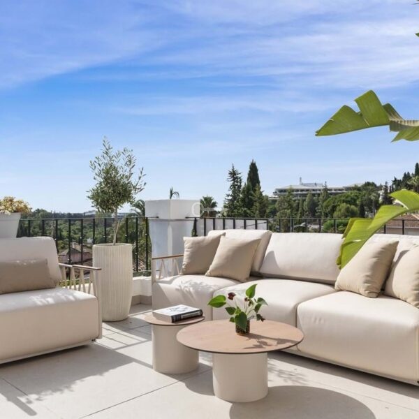 Penthouse Las Lolas is one of those rare residences that immediately conveys harmony, style, and thoughtful design. Positioned at the top of one of Nueva Andalucías best-located buildings, and just minutes from both Marbella Arena and Puerto Banús, this home offers a unique combination of tranquility, convenience, and breathtaking views. Here, Mediterranean living meets modern architecture in a dual-level penthouse featuring 304 m² of interior space and 100 m² of terraces, crafted to be enjoyed from morning to night.