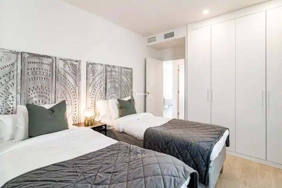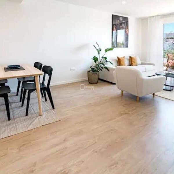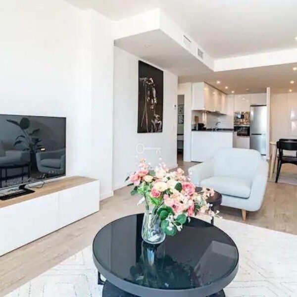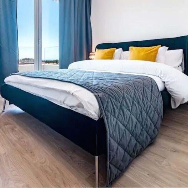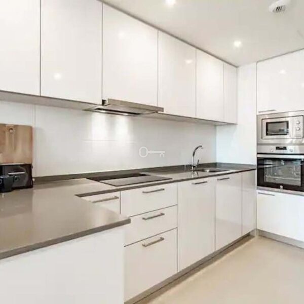 This elevated 5th floor unit boasts open sea views, with bright natural light per its position. The layout is modern and practical, divided between living and resting areas. The kitchen is open with all appliances. The living room is large, leading directly to a confortable sized terrace. Both bedrooms are of good size, with bathroom ensuite.