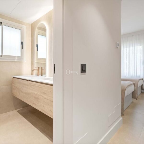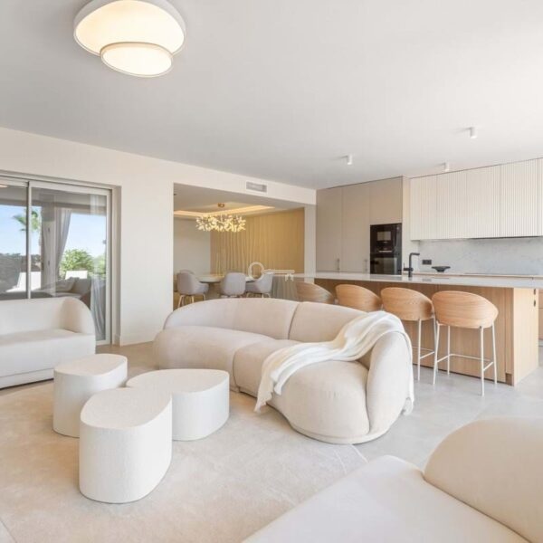 This fully renovated three-bedroom ground-floor apartment is located in one of the most exclusive and secure enclaves of Nueva Andalucía, offering a perfect balance of privacy, elegance and proximity to Marbellas Golf Valley, Puerto Banús and the coasts finest beaches.