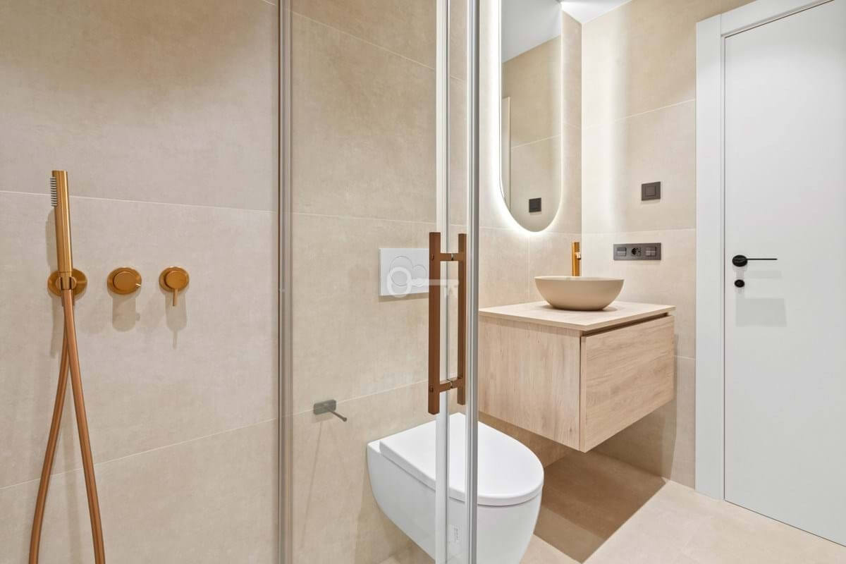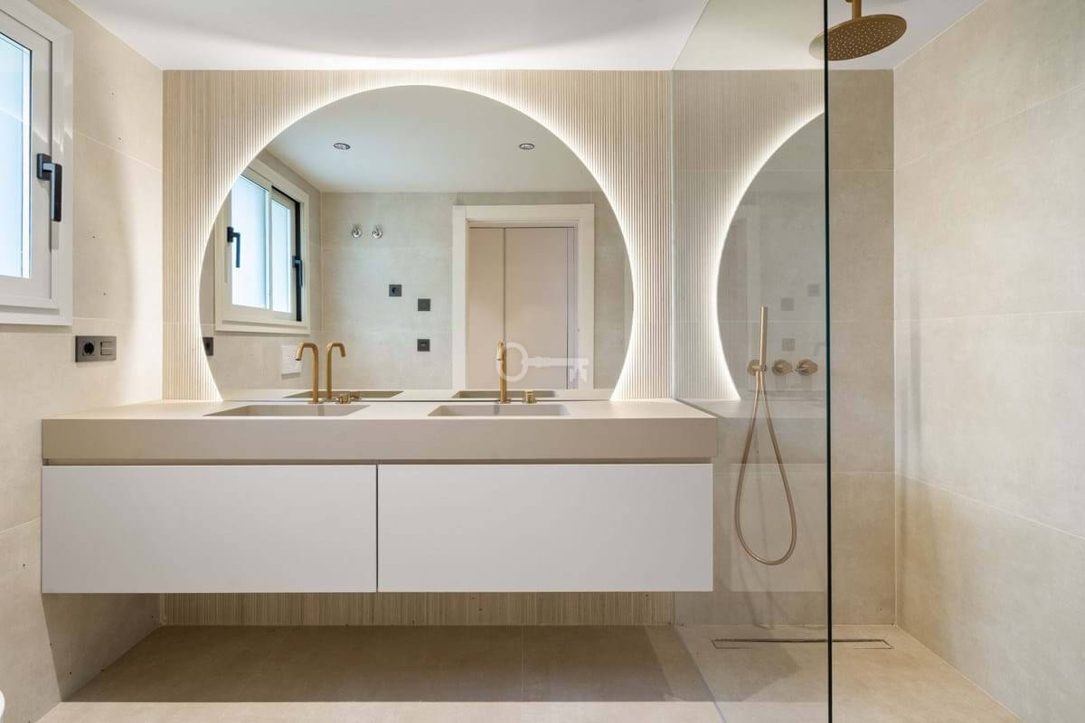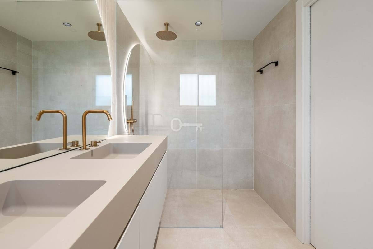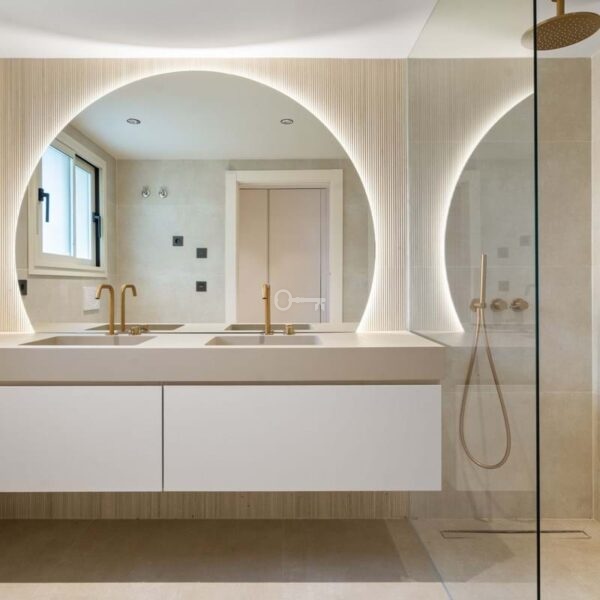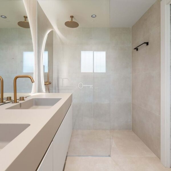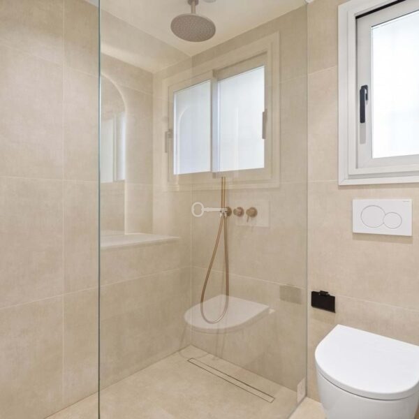 Each of the three bedrooms is fitted with bespoke wardrobes, and the bathrooms feature Italian fixtures, porcelain finishes and integrated lighting that highlight the homes modern architecture. The renovation has been carefully executed to provide both comfort and sophistication in every detail.