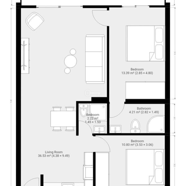 The apartment has been partially renovated and is sold without a kitchen and unfurnished, offering the perfect opportunity to customize it to your personal taste.