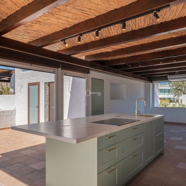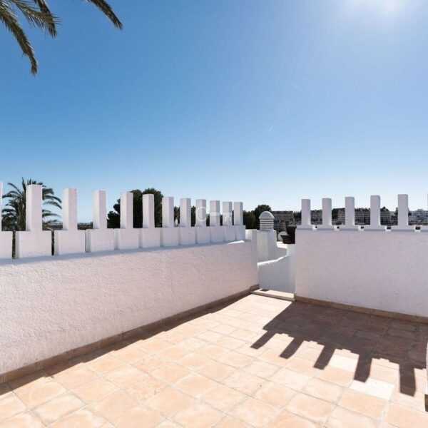Recently fully renovated to an exceptional standard, this stunning penthouse in Pueblo Arabesque offers a perfect blend of elegance, comfort, and Andalucian charm. Boasting three spacious bedrooms and three bathroomstwo of which are en-suitethe property has been thoughtfully designed using high-quality materials throughout. The west-facing orientation allows for beautiful natural light and warm afternoon sun, while a convenient parking bay is located directly outside. The well equiped kitchen has an american style fridge freezer, water filter and a sink eraser. All bedrooms feature fitted wardrobes, and the bathrooms are enhanced with luxurious underfloor heating. An advanced Airzone air conditioning system ensures year-round comfort in every room. One of the standout features of this home is its impressive roof terrace, offering both open and covered areas ideal for relaxing or entertaining. A section of the terrace has been enclosed with special down awnings and equipped with air conditioning, creating a versatile second living room that can be enjoyed throughout the year. In addition, a fully fitted outdoor kitchen with all appliances makes this space perfect for hosting guests or enjoying everyday outdoor living. The windows are fitted with electric blinds and the whole 1st floor has underfloor heating aswell. The property is set within beautiful architecture inspired by classic Al-Andalus style, combining character with modern convenience. Ideally located within walking distance to the vibrant Aloha Strip and a variety of shops, restaurants, and amenities. This is truly a unique and exceptional home that must be seen to be fully appreciated.