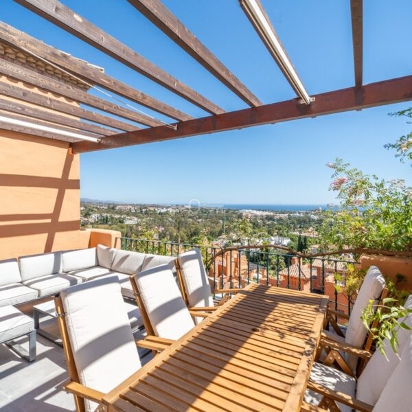 Nestled in the prestigious Les Belvederes community of Nueva Andalucia, Marbella, this exquisite luxury penthouse offers an unparalleled living experience. Boasting a total built area of 190m², including a spacious interior of 161m² and a 60m² terrace, this property is designed to provide both comfort and sophistication. Perfectly situated mountainside, it offers breathtaking panoramic views of the sea and surrounding landscapes, making it a truly unique residence.