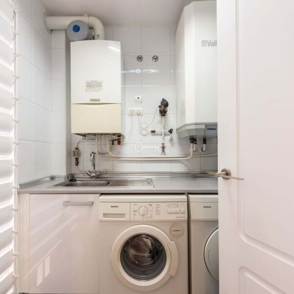 The property can be sold fully furnished and includes two underground parking spaces and a private storage room.