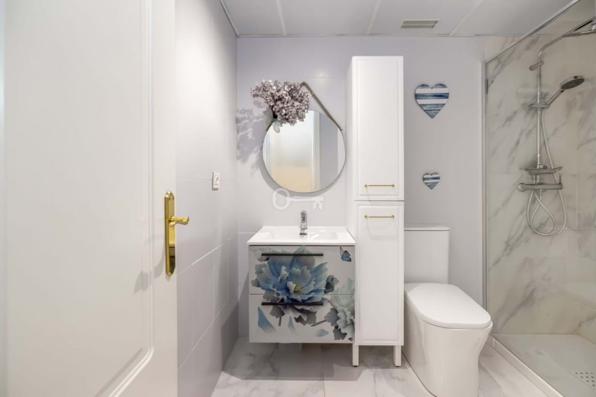 The apartment is thoughtfully designed with a fully fitted open-plan kitchen, marble floors, fitted wardrobes, and double glazing throughout. The living and dining areas are bright and airy, benefitting from direct access to the private terrace, which offers delightful views of the sea, mountains, gardens, and urban surroundings. Additional features such as air conditioning, security shutters, an alarm system, security entrance, video entrance, and surveillance cameras ensure both comfort and peace of mind.