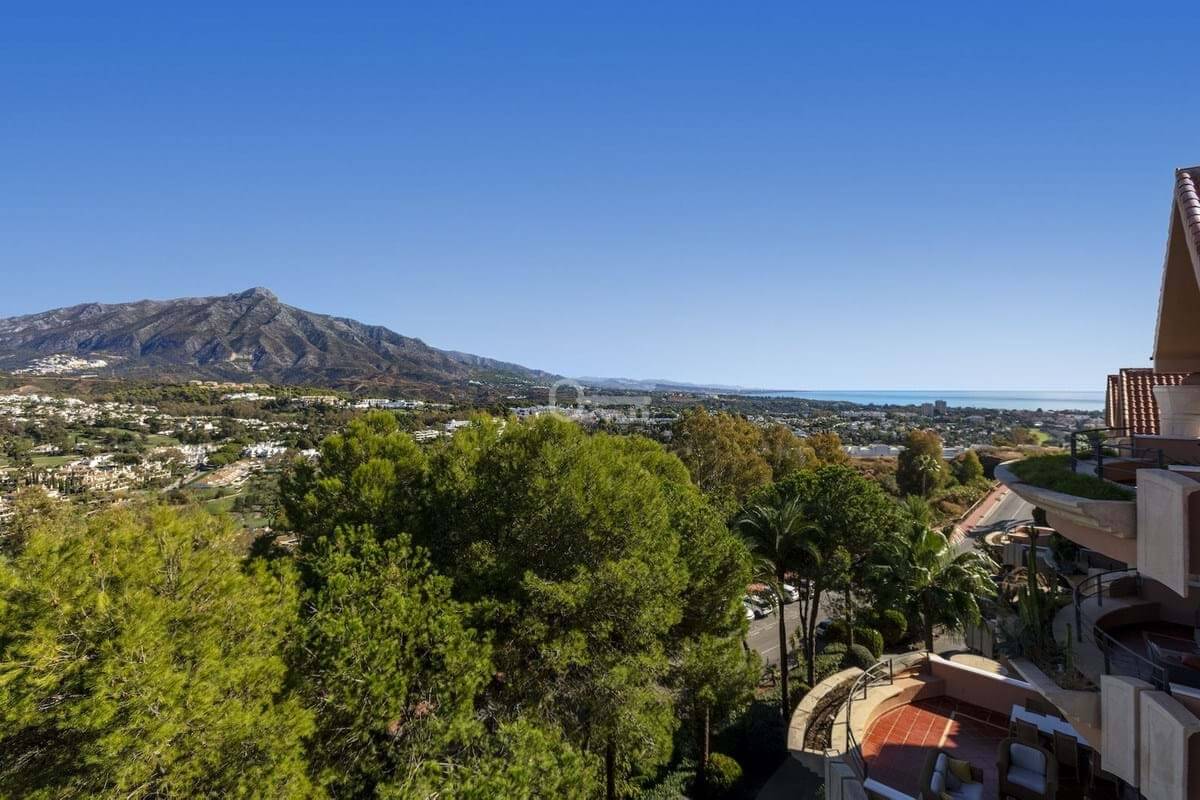 Discover one of the most spectacular vantage points in Nueva Andalucía with this rare 3-bedroom penthouse in the Magna Marbella development. Positioned in an elevated location, this residence boasts unrivalled panoramic views of La Concha mountain, the lush fairways of Los Naranjos & Las Brisas Golf Courses, and the sparkling Mediterranean Sea a truly breathtaking backdrop from dawn to dusk.