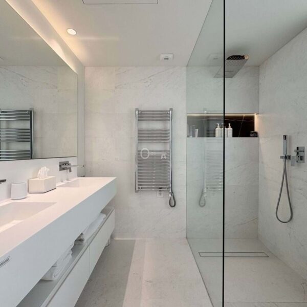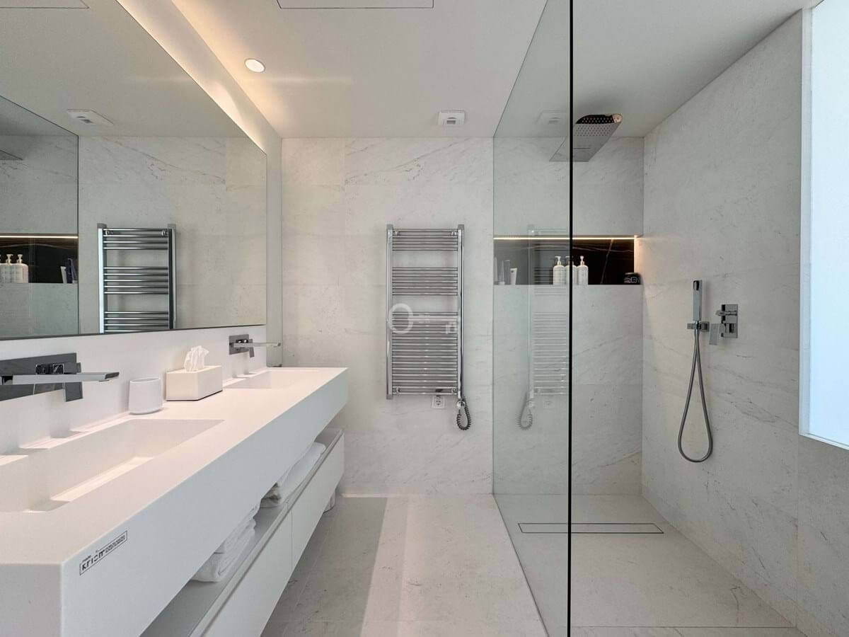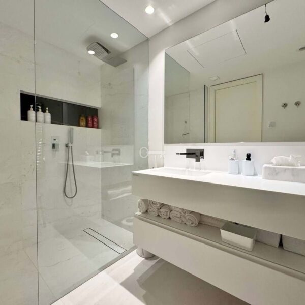 The open-plan kitchen features top-of-the-line appliances and premium materials. The bedrooms are stylish and serene, with built-in wardrobes. The bathrooms combine elegance and functionality, with clean lines and high-quality finishes.