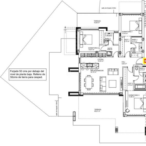 This spacious apartment with three bedrooms and two bathrooms has large windows that let natural light flow through the living areas and create a seamless connection with the large terrace offering sea views.