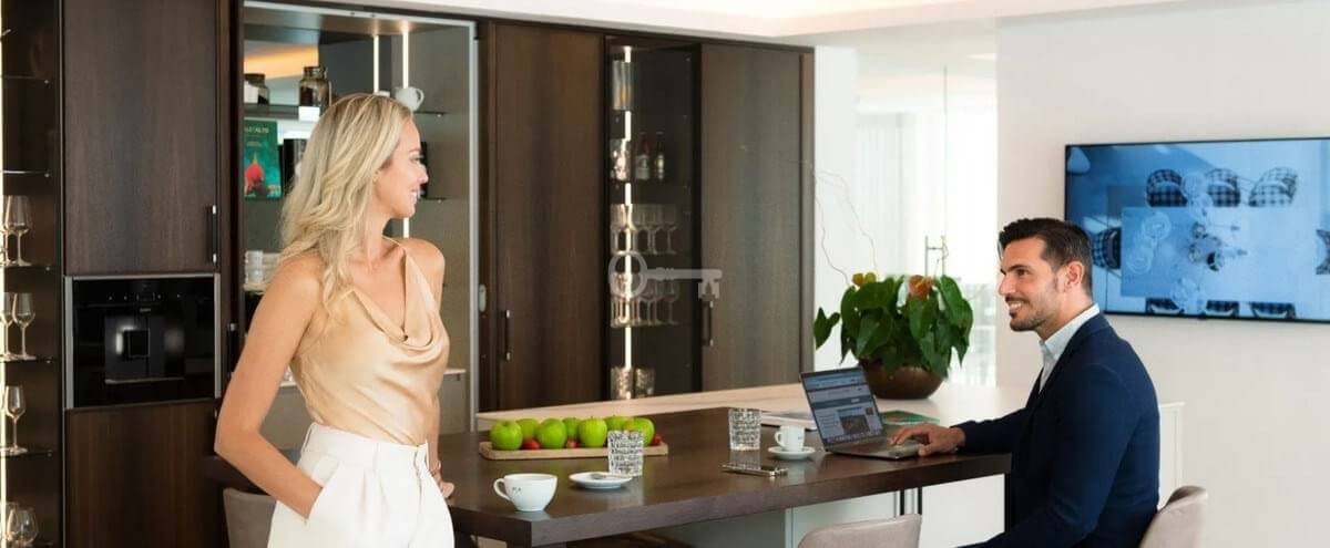 A modern kitchen blends contemporary design with high-quality materials and integrates perfectly with the living area, creating an ideal space for both everyday living and entertaining. The property also includes underfloor heating, air conditioning, domotic and two underground parking spaces.