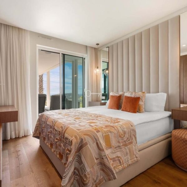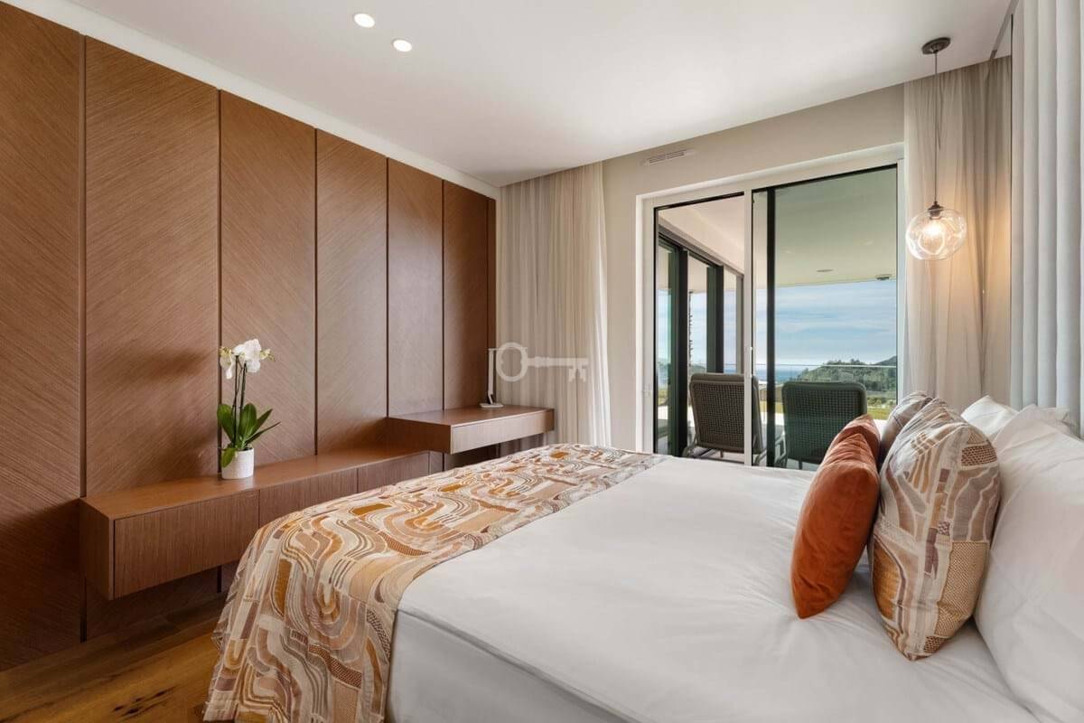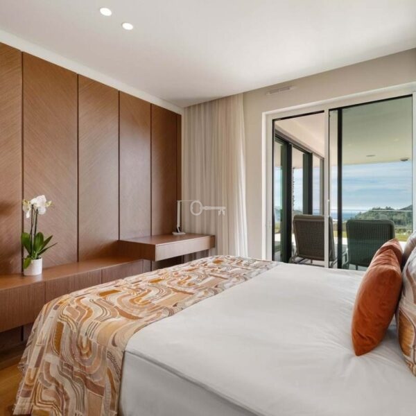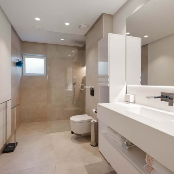 The primary suite features direct access to the terrace and private garden, allowing residents to wake to coastal views. It includes a well-appointed en-suite bathroom with premium materials and refined detailing. Two additional bedrooms share a modern bathroom, making the property ideal for family use or hosting guests. A separate guest toilet adds convenience and discretion.