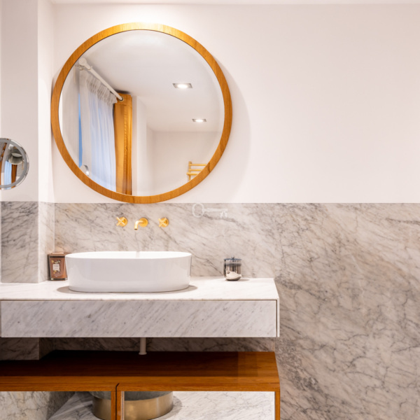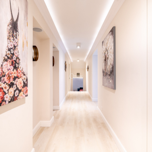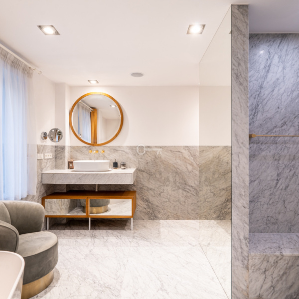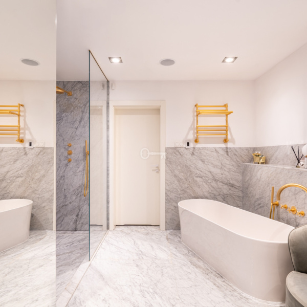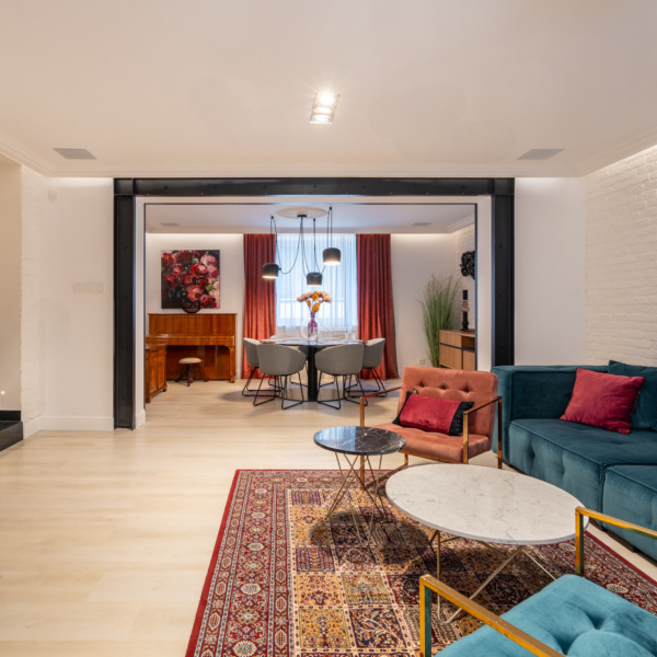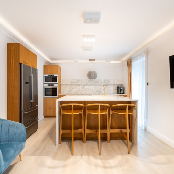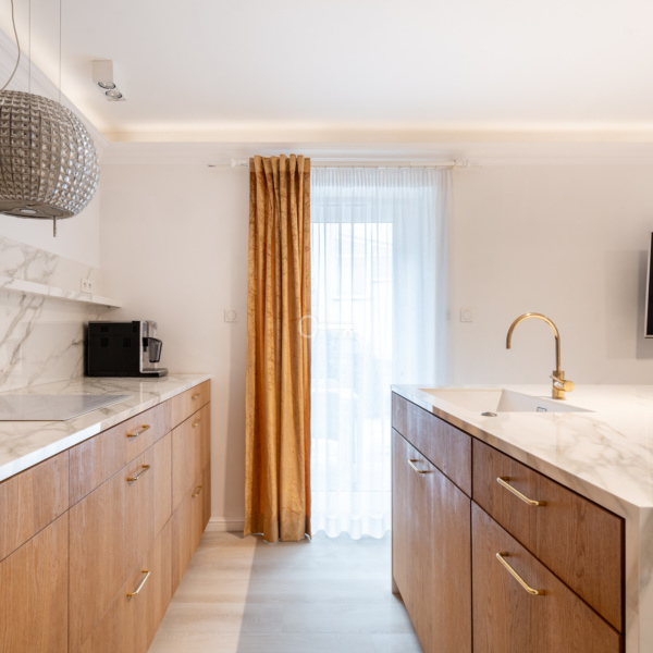 Villa “Gryf,” built in 1930 for Doctor Jan Betlejewski, was one of the first elements of Orłowo’s development. Before the war, the building served as a guesthouse. By the decision of the conservator in 1983, it was recognized as a cultural asset and was entered into the register of historical monuments. The investors, together with the Monument Conservator, with great effort and based on unique, pre-war photographs, decided to revitalize the property, resulting in four luxurious apartments. The apartment is a modern classic with elements of luxurious eclecticism. Finished using high-quality materials, such as marble in the bathrooms and elegant tiles. The modern, fully equipped kitchen with an island features elegant fronts and countertops.