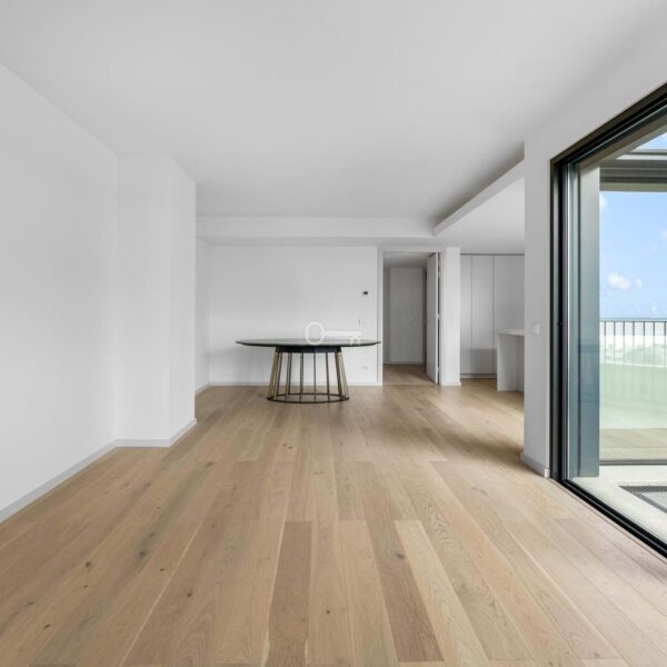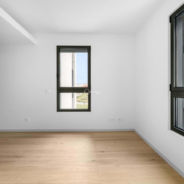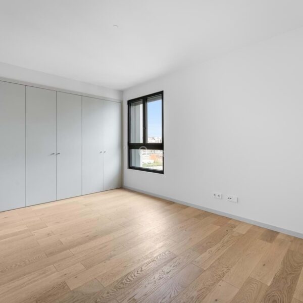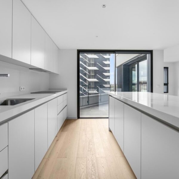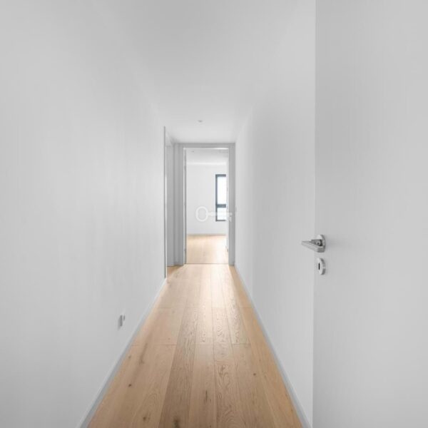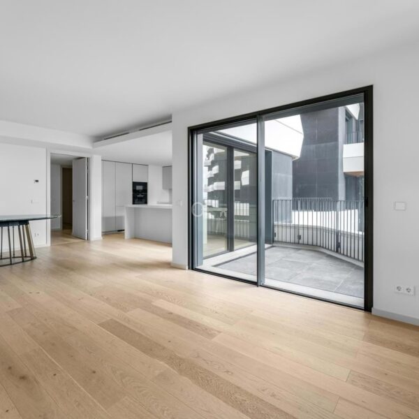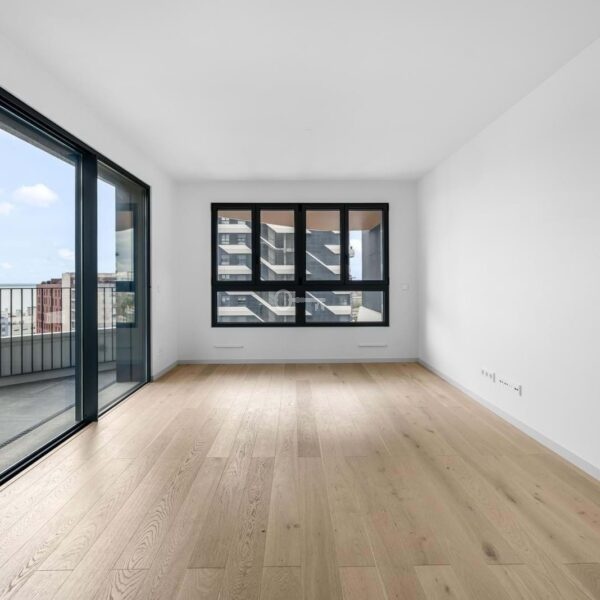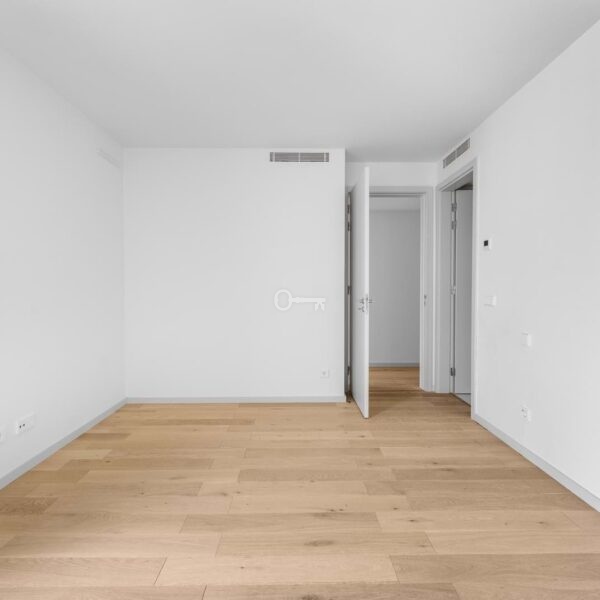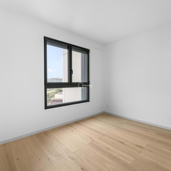 2-bedroom apartment with balcony, storage room, and parking in the Distrikt gated community, located in Parque das Nações in Lisbon.