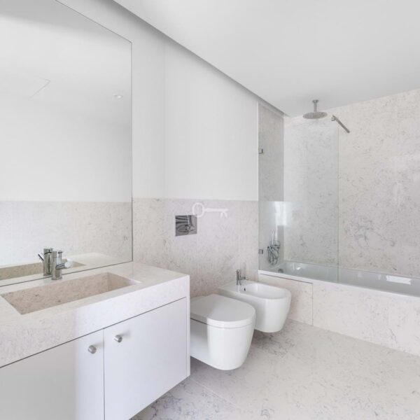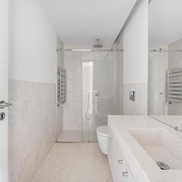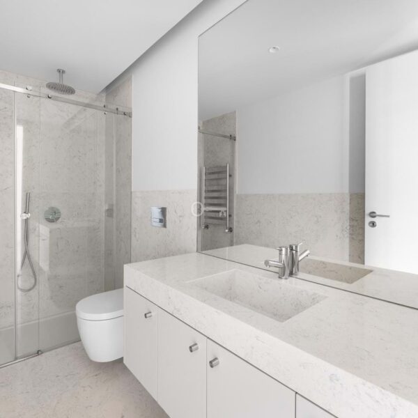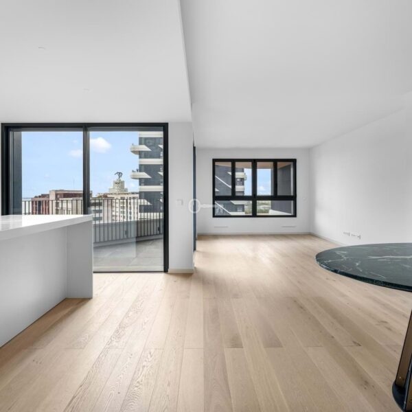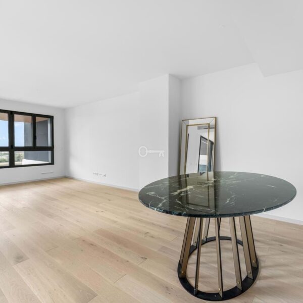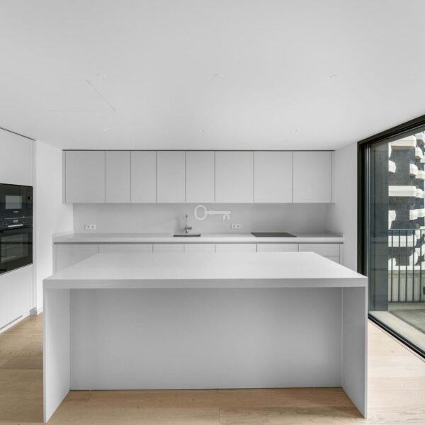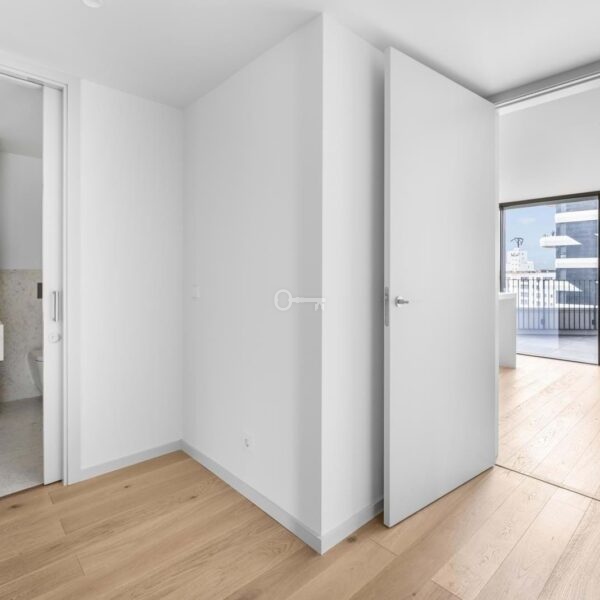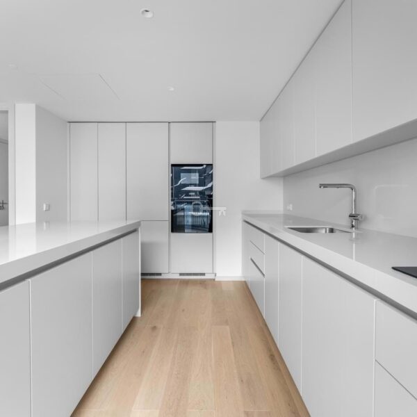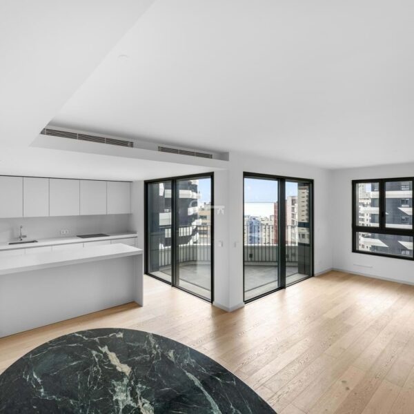 2-bedroom apartment with balcony, storage room, and parking in the Distrikt gated community, located in Parque das Nações in Lisbon.