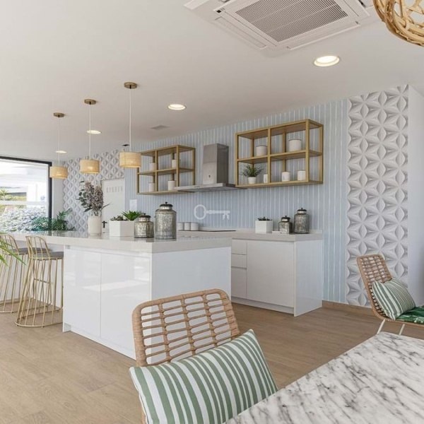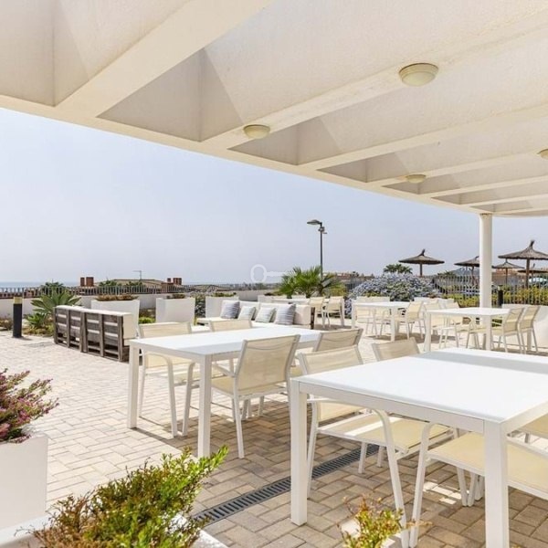 Straight ahead, the open-plan kitchen, dining, and living area is light-filled and modern, seamlessly leading out onto the large terrace, ideal for dining al fresco or enjoying the long, sunny Spanish afternoons while soaking in the stunning sea views.