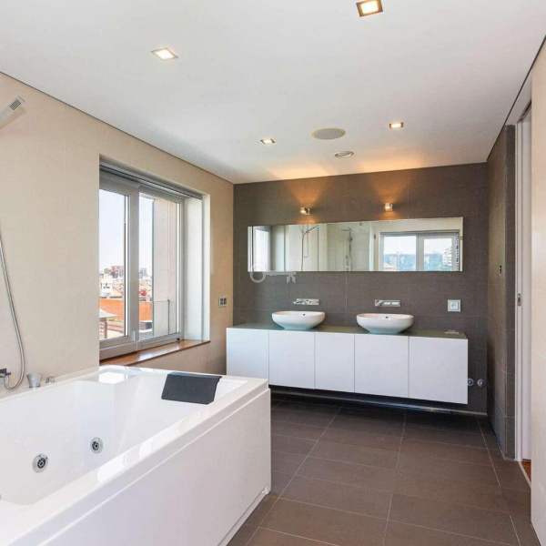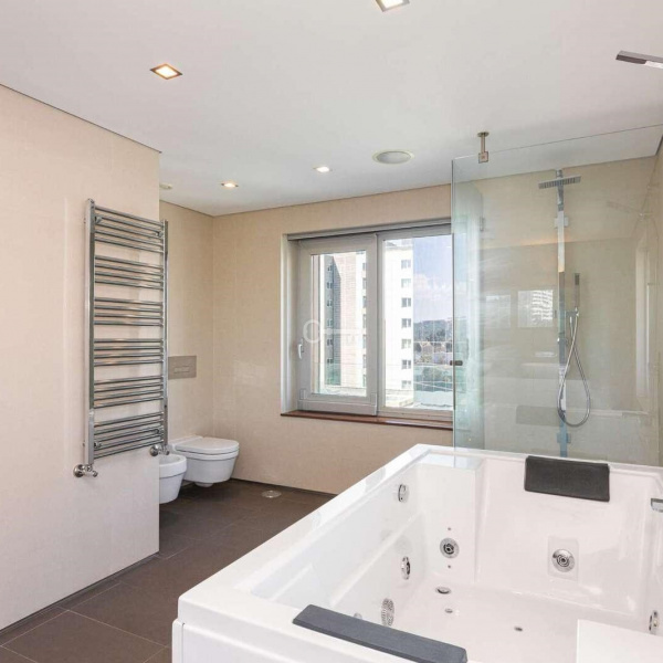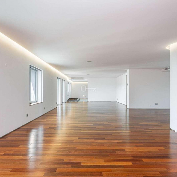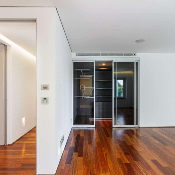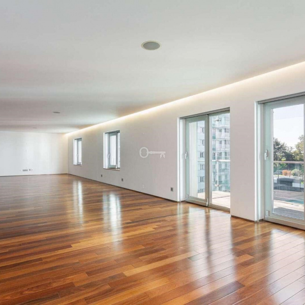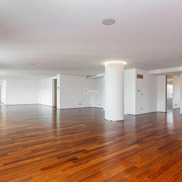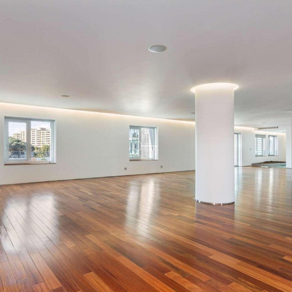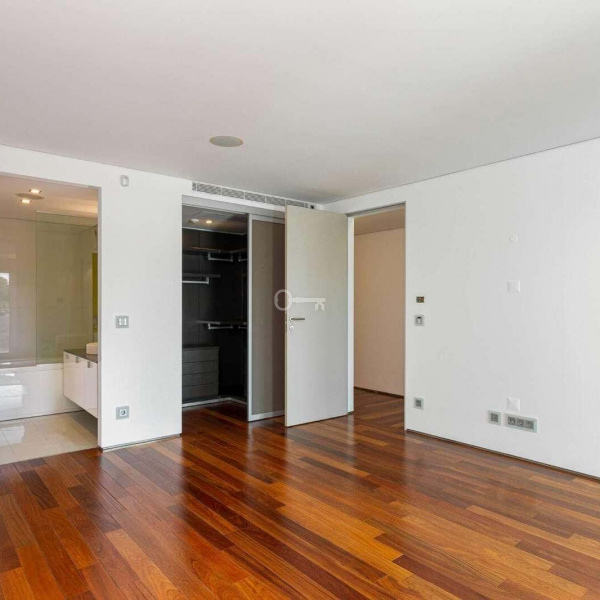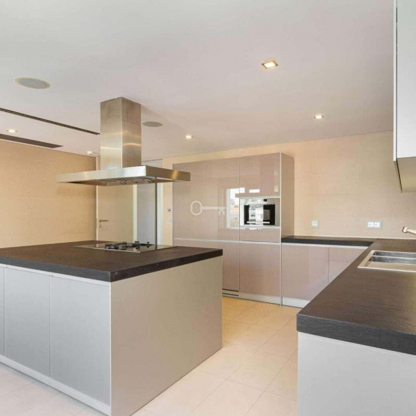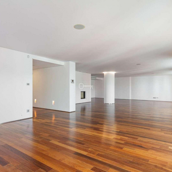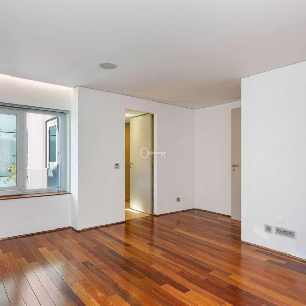 6+3 bedroom apartment, with a 519 sqm area, with parking space for three cars in a garage and a storage area, inserted in a closed condominium with leisure areas, gardens, a swimming pool and a gym. With view over the swimming pool and communal areas, the apartment faces south/west and has Monsanto as background, highlighting the verdant areas provided by nature. The apartment is distributed as follows: