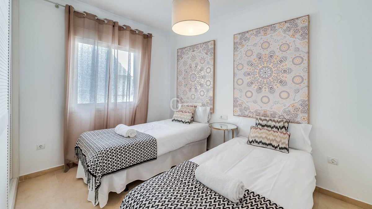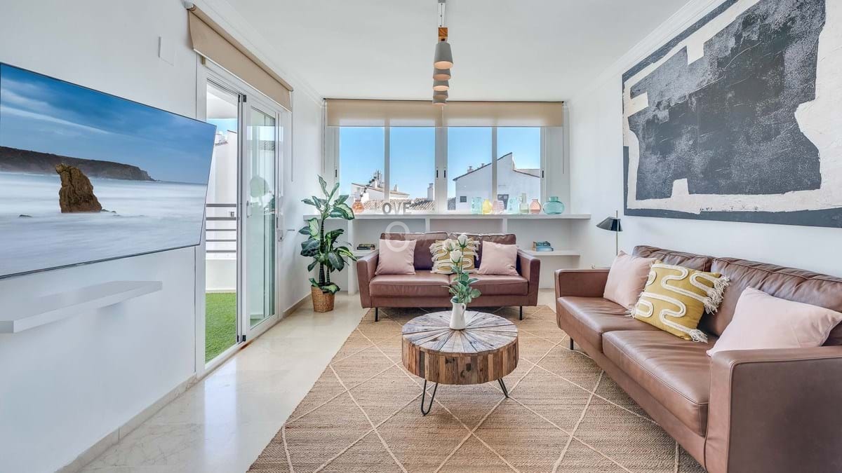 The apartment offers 2 bedrooms and 2 bathrooms on the entrance level, along with a bright living room opening to a spacious terrace and a fully equipped kitchen with a laundry area. Upstairs, youll find the master bedroom with its own bathroom and a huge south-facing terrace to enjoy the sun and views.