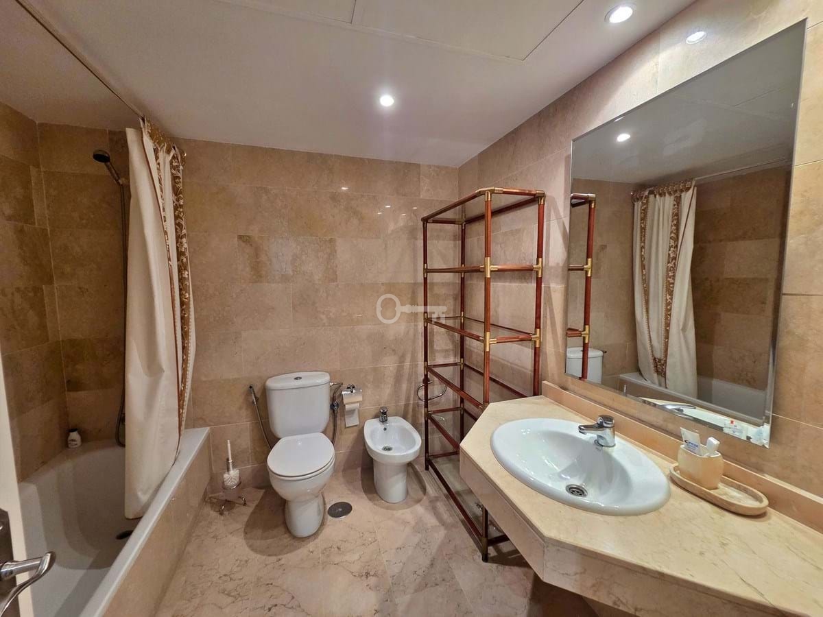 The apartment is distributed over two levels. On the main floor there are two bedrooms and two bathrooms, as well as a terrace that has been enclosed and is currently used as a separate dining area next to the living room.