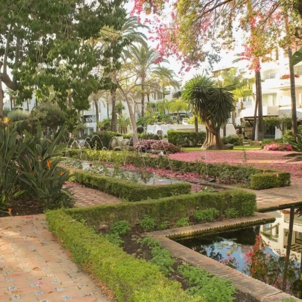 * Iconic, Andalusian white-village-style complex with beautiful manicured subtropical gardens featuring walkways, ponds, waterways and fountains with Arabic and Moorish influences.