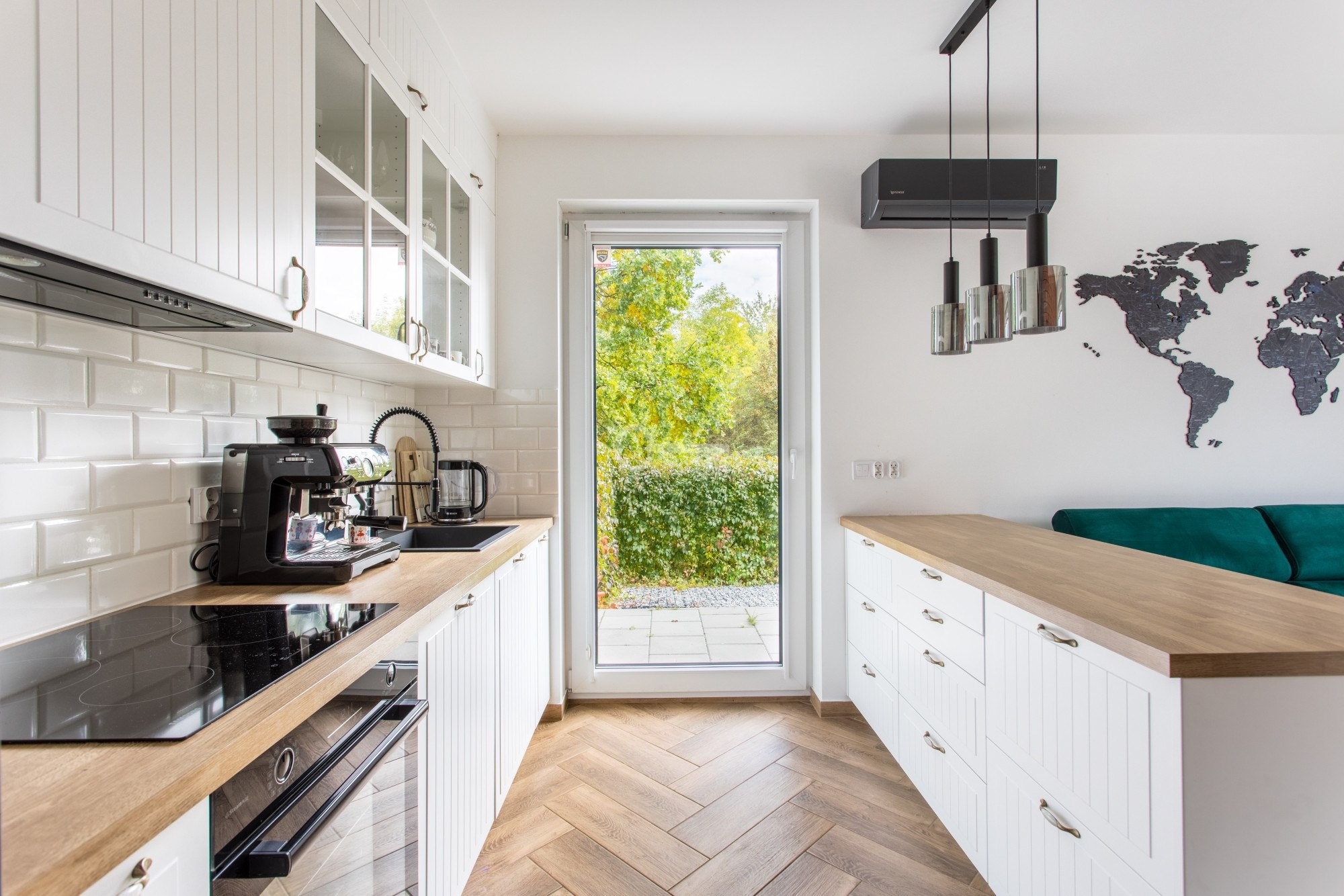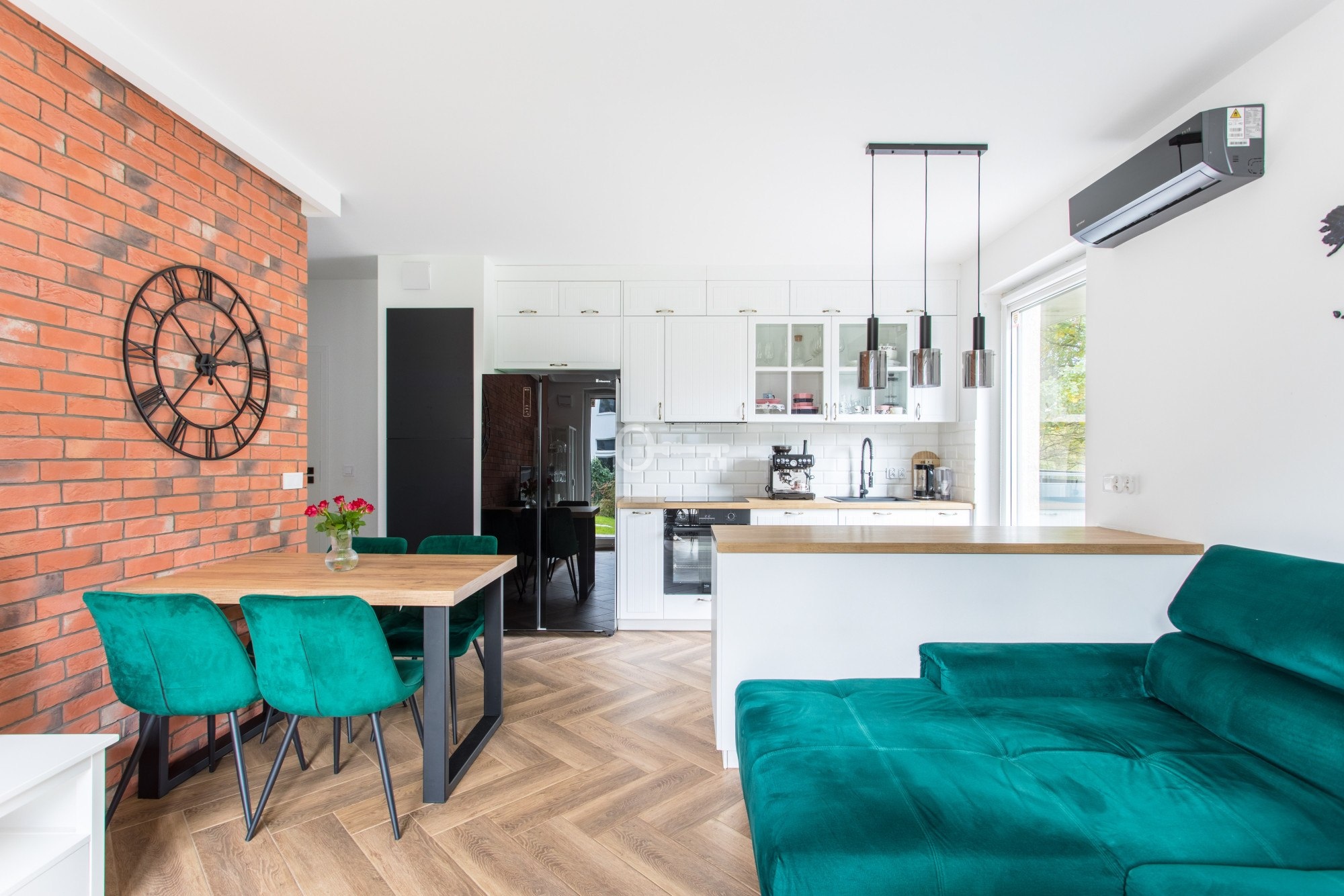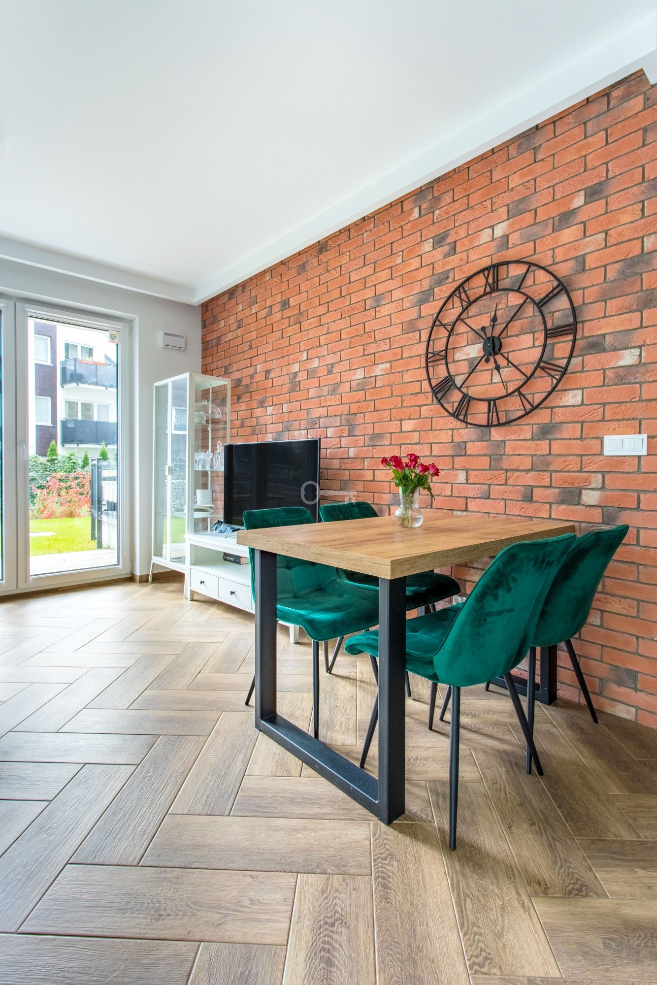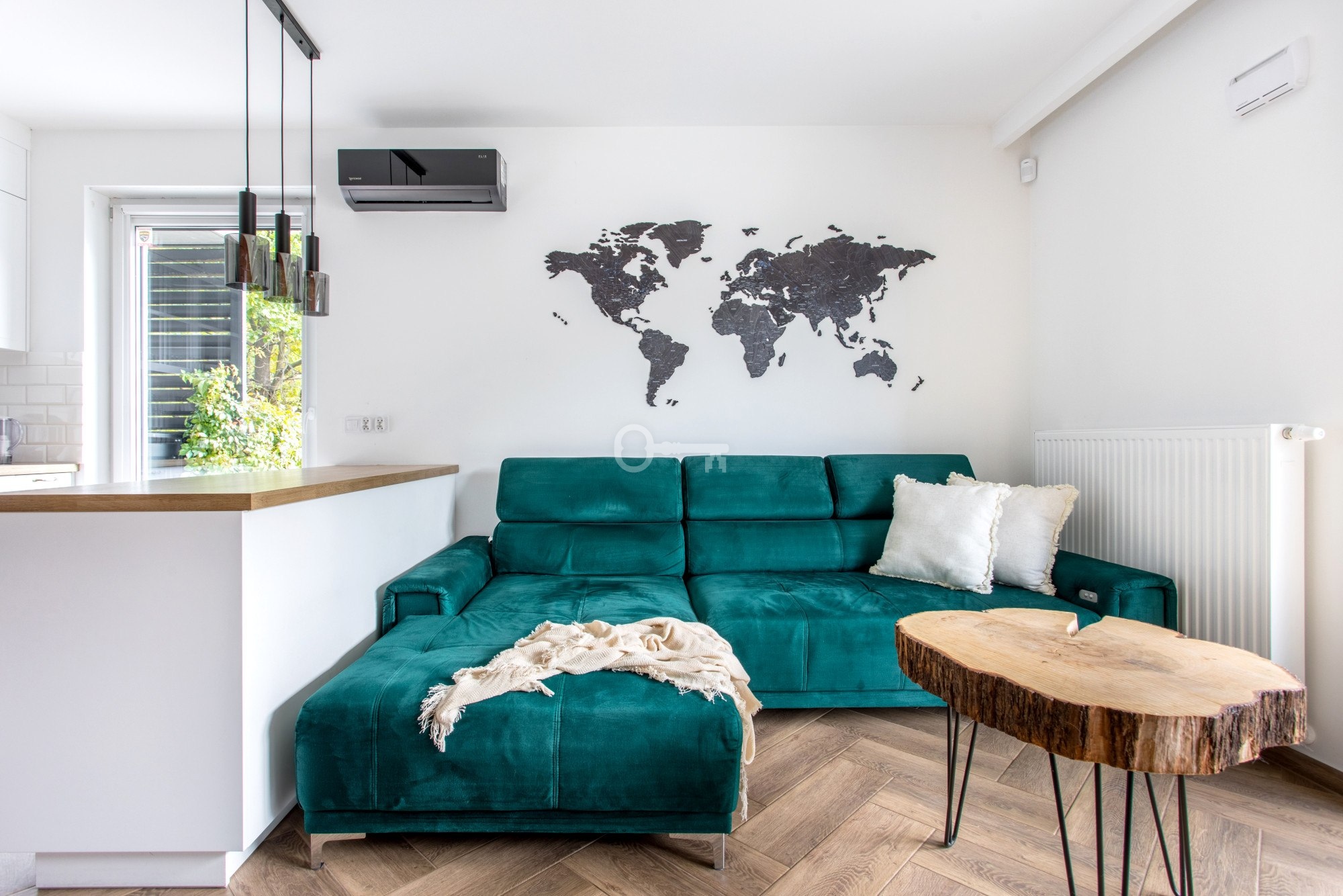 Apartment in a new block in a housing estate built by RT2 Deweloper. The apartment has been finished with attention to detail and is ready to move in. Fully equipped kitchen. Air conditioning unit installed in the living room. Day/night internal blinds and external blinds ensure comfort and privacy. Outside, there is a water connection for watering the garden. The price of the apartment includes a garden design.