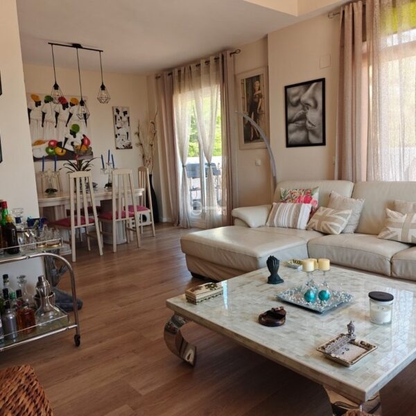 The property is presented in immaculate condition and features a fully fitted kitchen, a separate laundry room, and a bright living area with direct access to spacious private terraces enjoying the sun throughout the day. Air conditioning (hot and cold), double glazing, and an alarm system ensure year-round comfort and peace of mind.