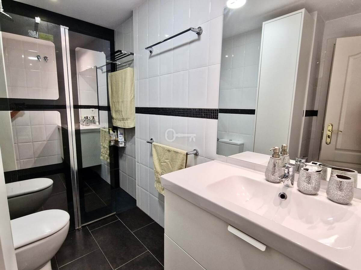 Price reduction !! Immaculate, beautifully reformed, spacious ground floor duplex apartment with 2 terraces, private garden AND sea and pool views!! Located in a quiet corner of this fabulous community, the apartment, at entry level, consists of hallway,, large lounge/dining room, modern fully equipped kitchen, double bedroom (currently used as an office), bathroom and a wonderful terrace from which stunning sea, garden and pool views can be enjoyed. Downstairs, we find another double bedroom, master bedroom with ensuite bathroom and another terrace, again with beautiful views. Then the lovely recently renovated private garden, with grass, plants, fruit trees and a laundry area. There is parquet flooring throughout the property, with the exception of the bathrooms and kitchen. The property also has a storage room of 6m2.
