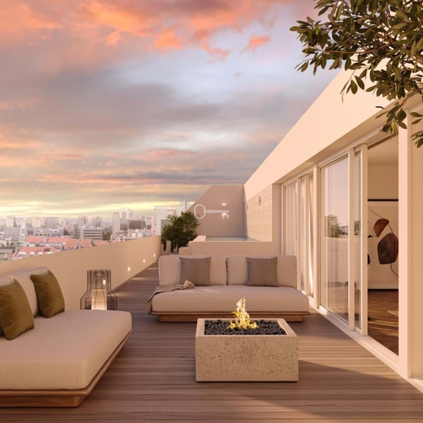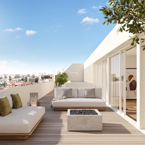 The Penthouses on the top floor are exclusive and charming apartments with wide exterior spaces. Benefit of elegant balconies and terraces overlooking Lisbon and gardens in the surroundings (including the Gulbenkian gardens). From enjoying a pool day with your family to drinking a glass of wine in the company of your friends, here you are free to live the life you always wanted.