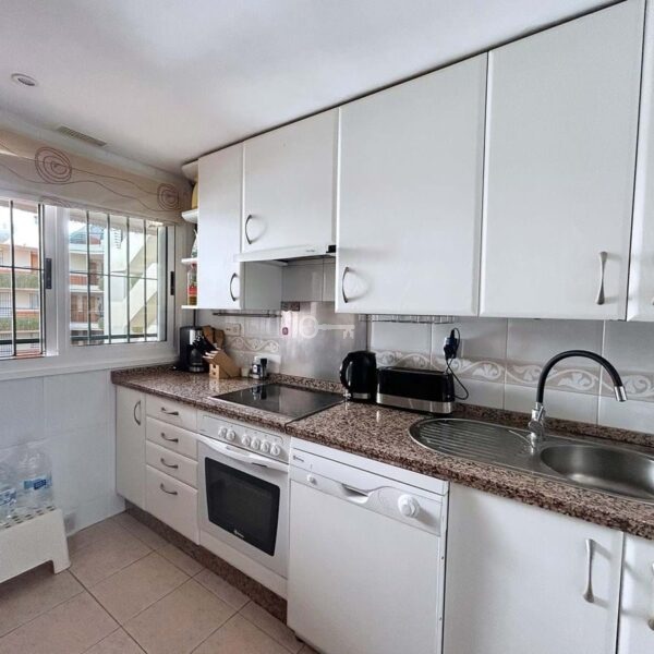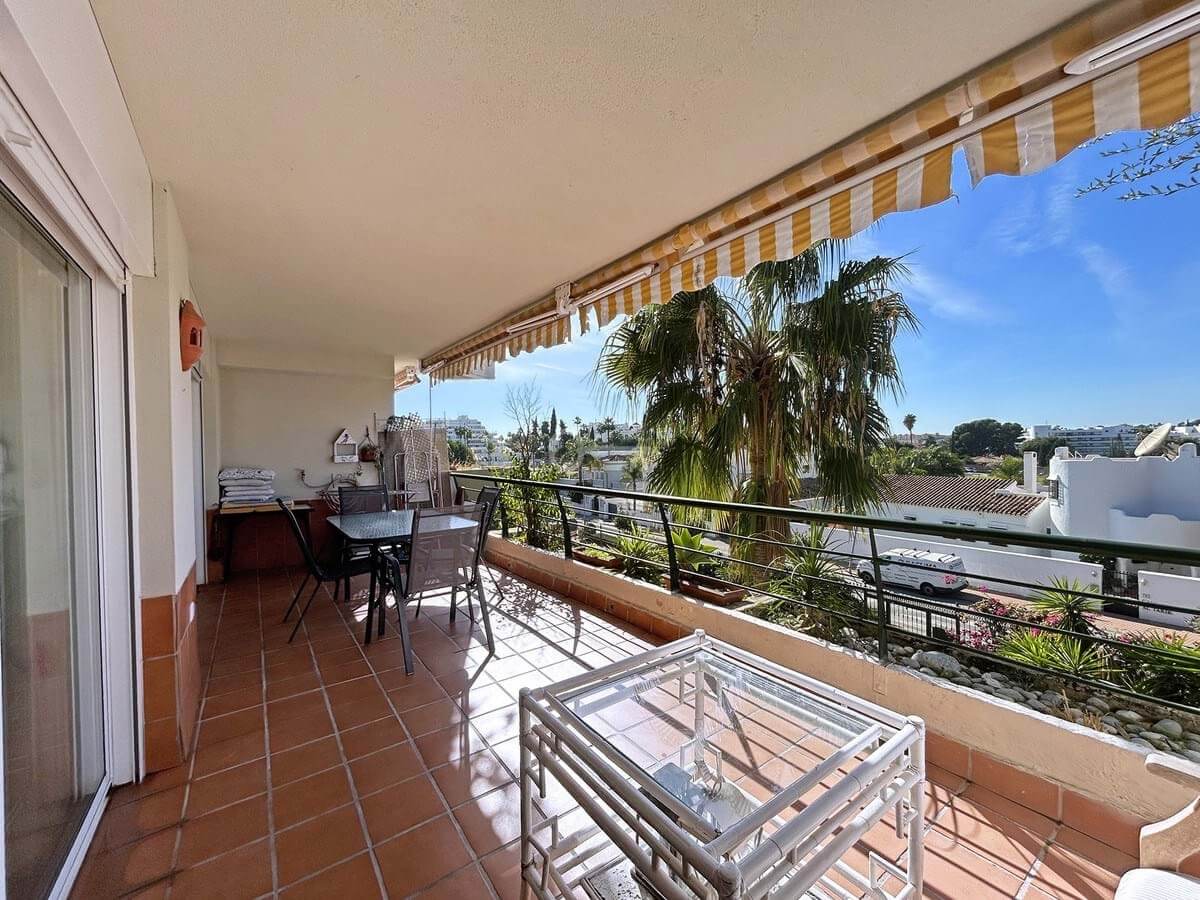 This apartment of over 90 m² offers a comfortable and bright layout, ideal for everyday living or as a second home on the Costa del Sol. It has two bedrooms and two full bathrooms, the master bedroom being en suite and with direct access to the terrace. The kitchen is separate and fully equipped, and the spacious living room has a dining area and access to a pleasant covered terrace of over 18 m² with unobstructed views and west-facing. A parking space is included.