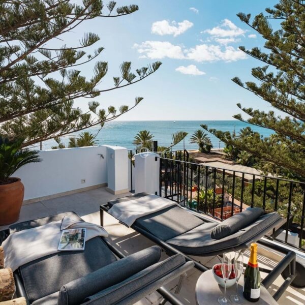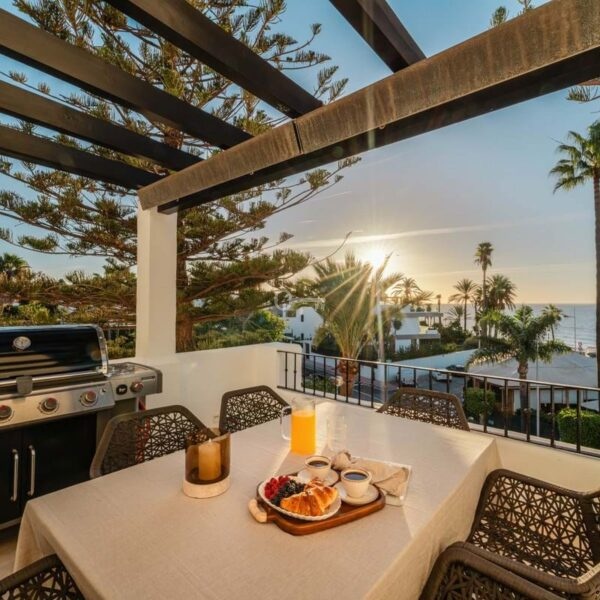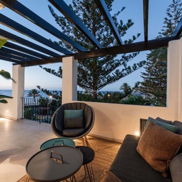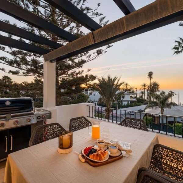 Positioned along Avenida de las Petunias, one of the most desirable areas in San Pedro, the property enjoys an exceptional location only 25 meters from the beach promenade. This proximity to the sea allows easy access to Playa San Pedro de Alcántara, known for its wide sandy stretch and calm waters, ideal for swimming and family activities. The surrounding area offers a lively yet relaxed atmosphere, lined with palm trees, cycling paths, and beachside dining venues such as Macaao Beach Club, Nuevo Reino, and El Ancla Restaurant, all known for their vibrant Mediterranean cuisine and sea views.
