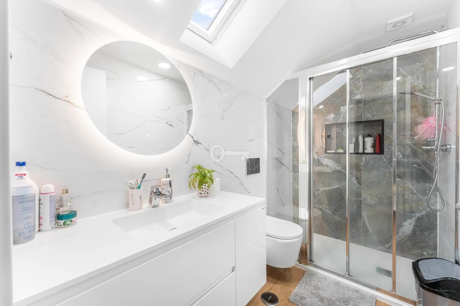 Guest bathroom with heated mirror