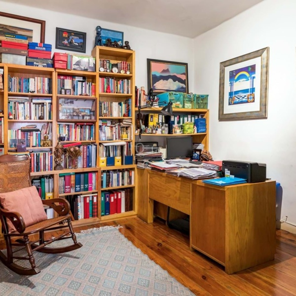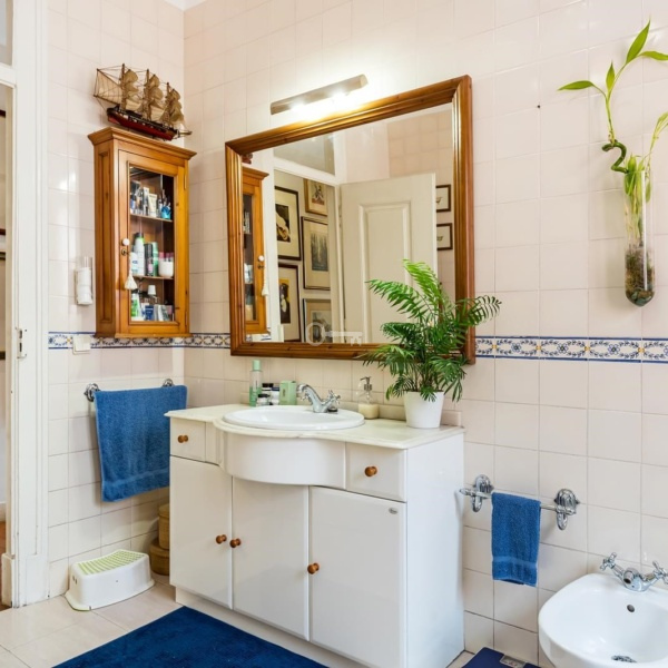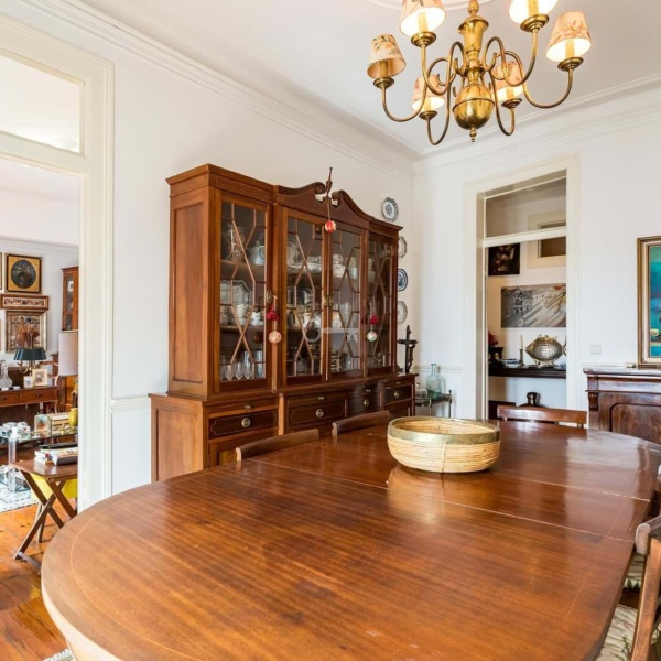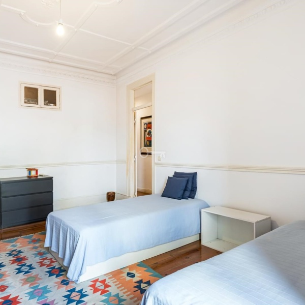 The apartment also has three large bedrooms, with areas between 16 and 19 m2, two interior bedrooms converted into an office and closet, as well as two complete bathrooms. Maintaining its original charm, it features carved ceilings with high ceilings and riga wooden floors.