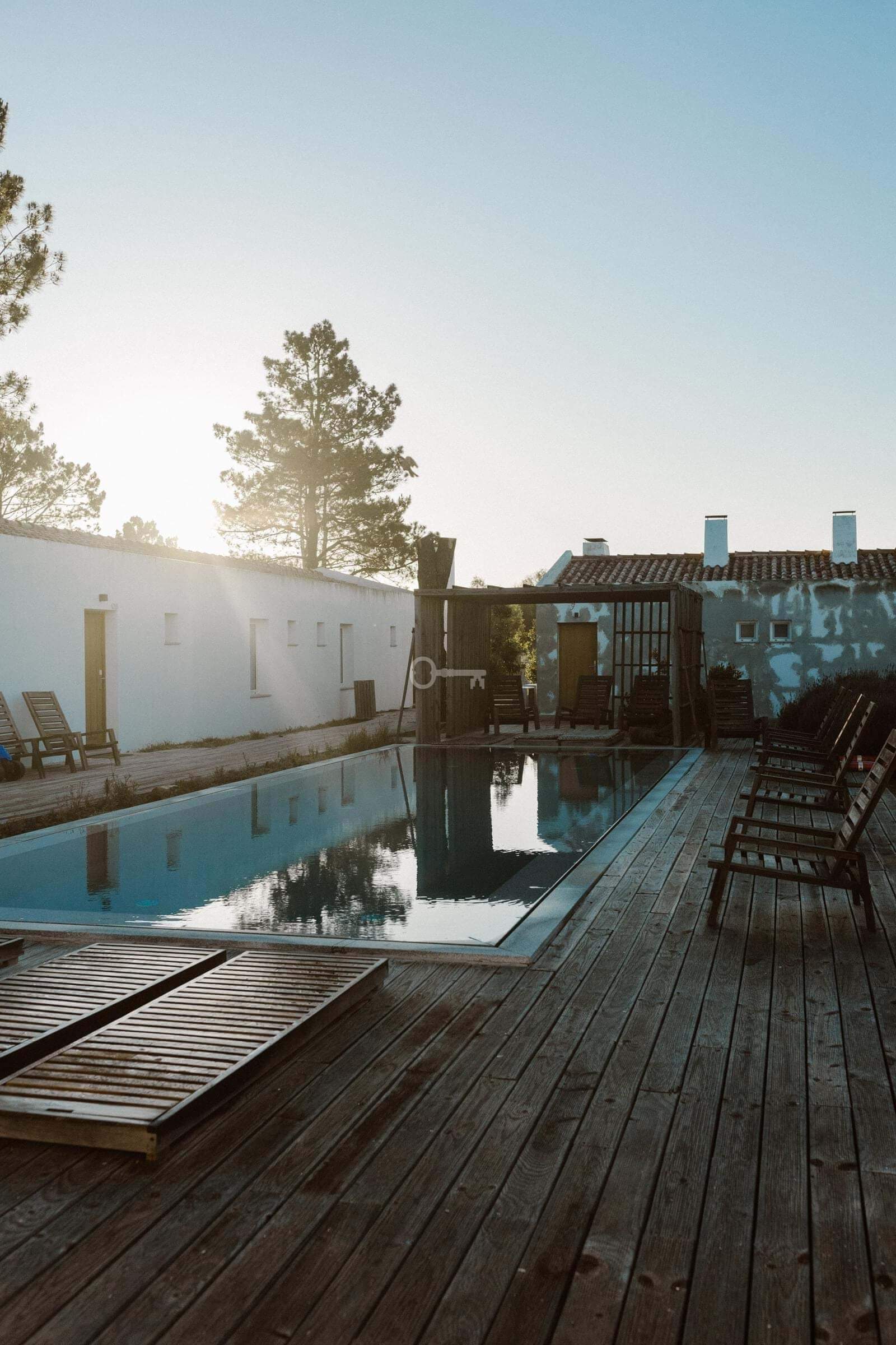 With 9 hectares of pure air and good living, Craveiral houses four clusters of homes in different typologies, from studios to 2-bedroom houses. Three pools, one indoor, a restaurant with organic produce, a nature interpretation center, an orchard, a farm with animals, and an unforgettable space between the countryside and the sea.