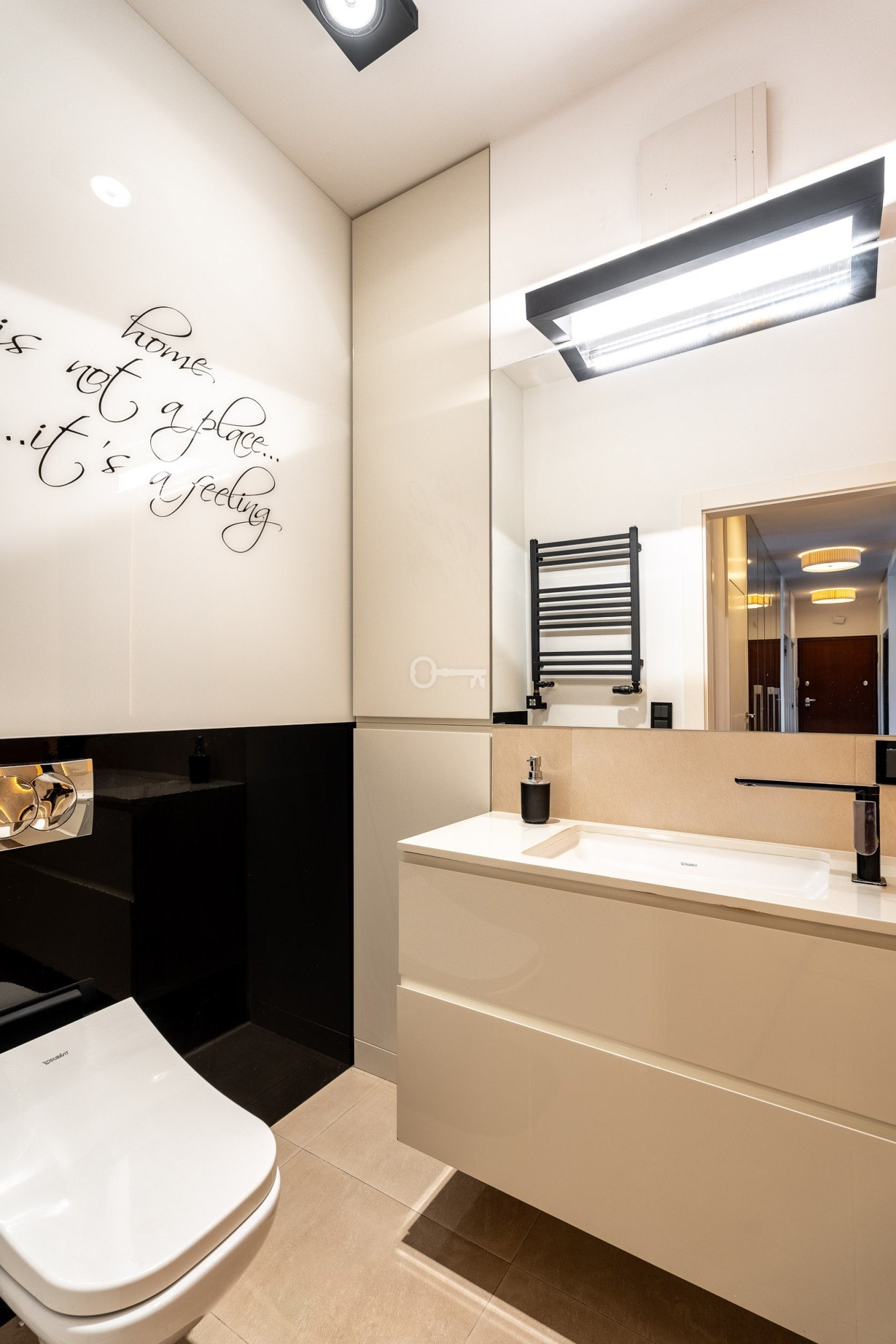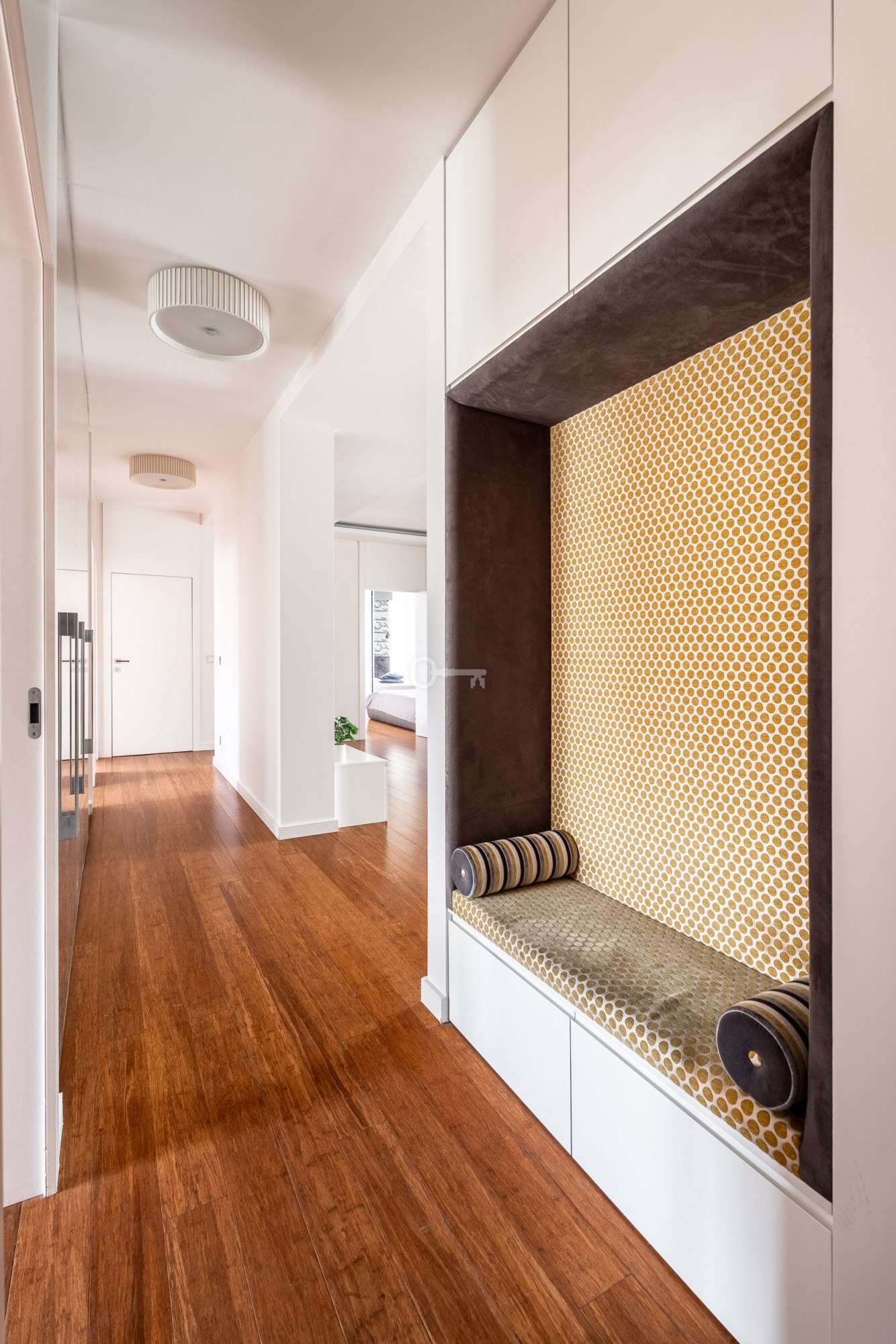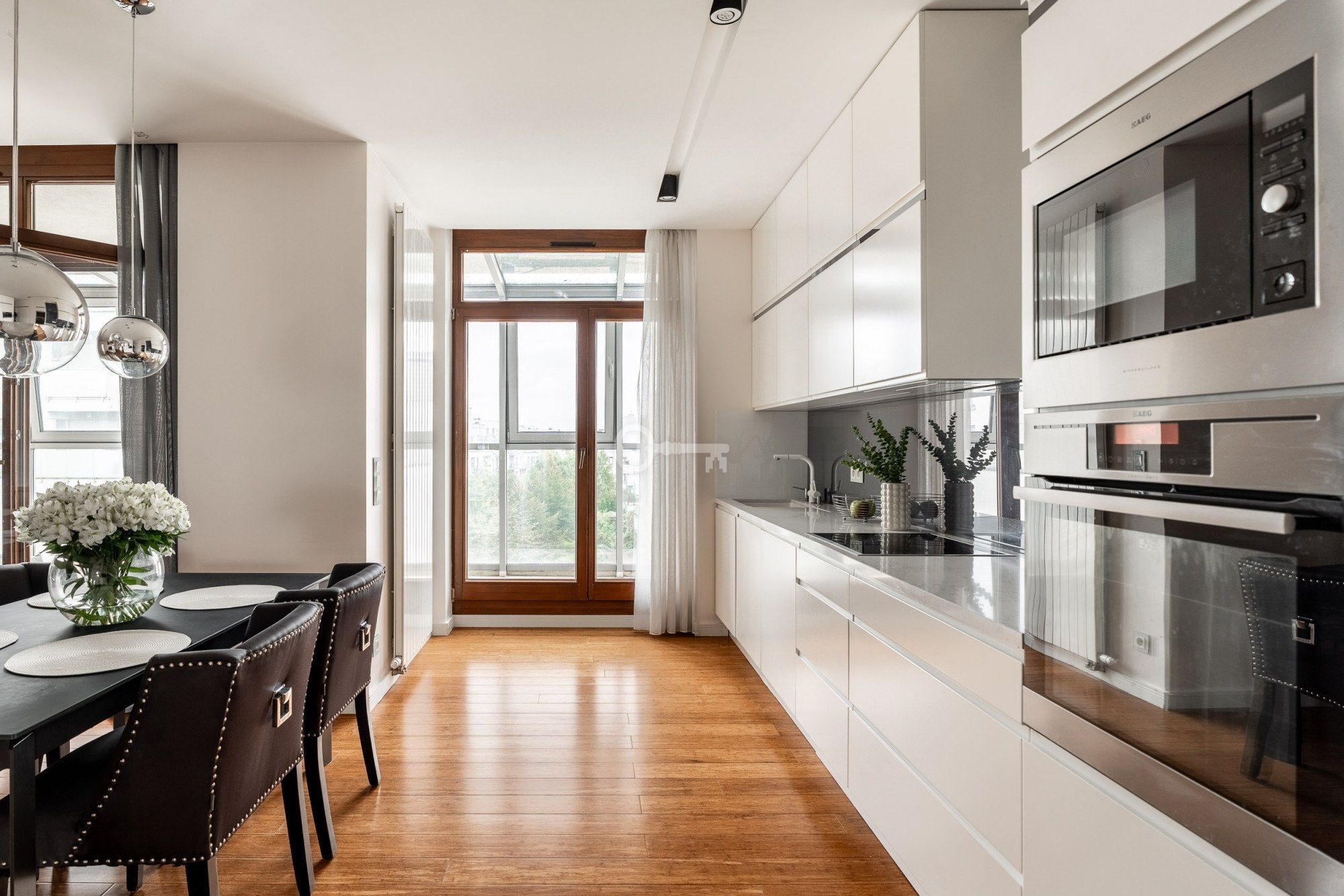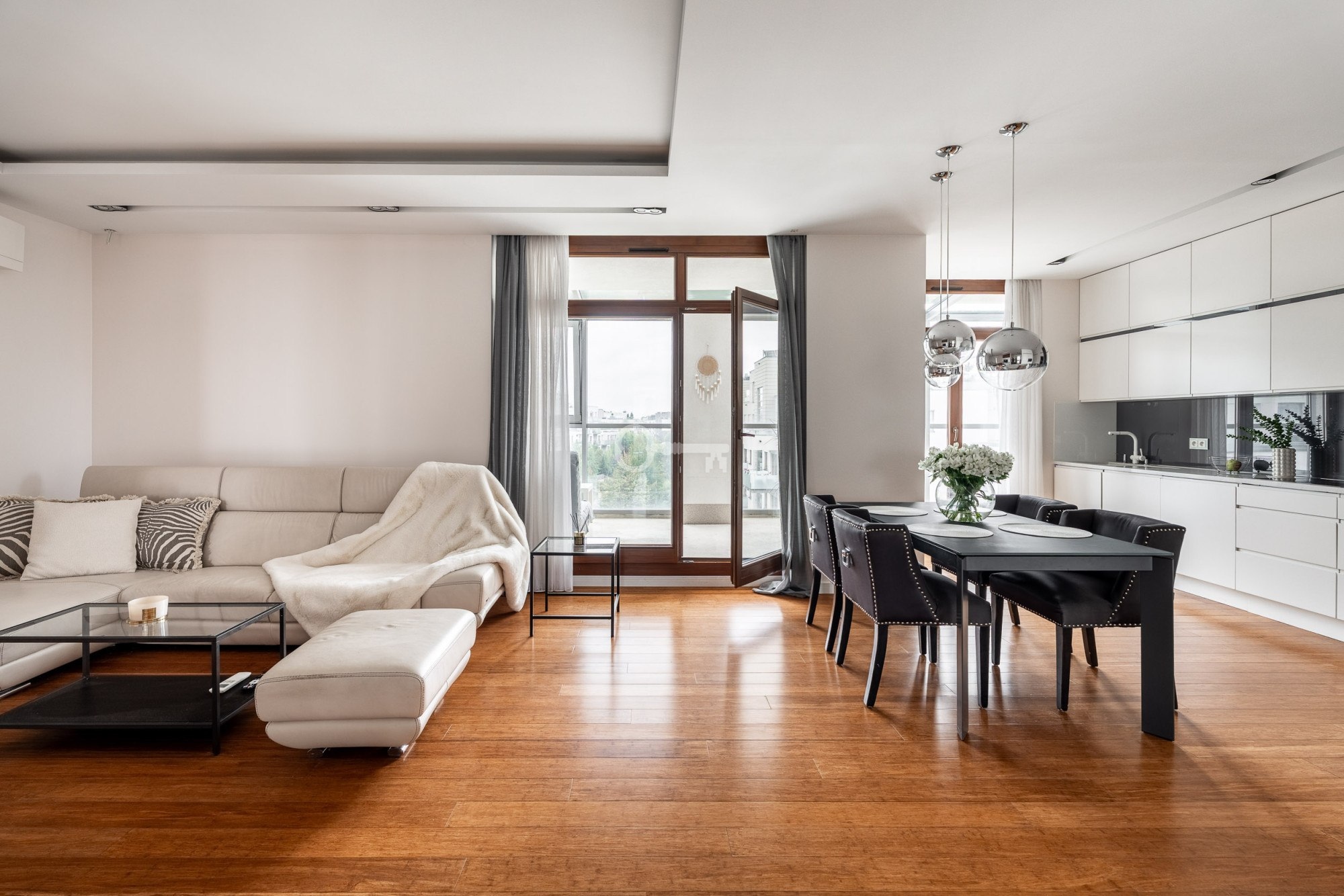The apartment is located in a prestigious location—Miasteczko Wilanów. It is one of the most desirable parts of Warsaw, combining urban comfort with an intimate character.
