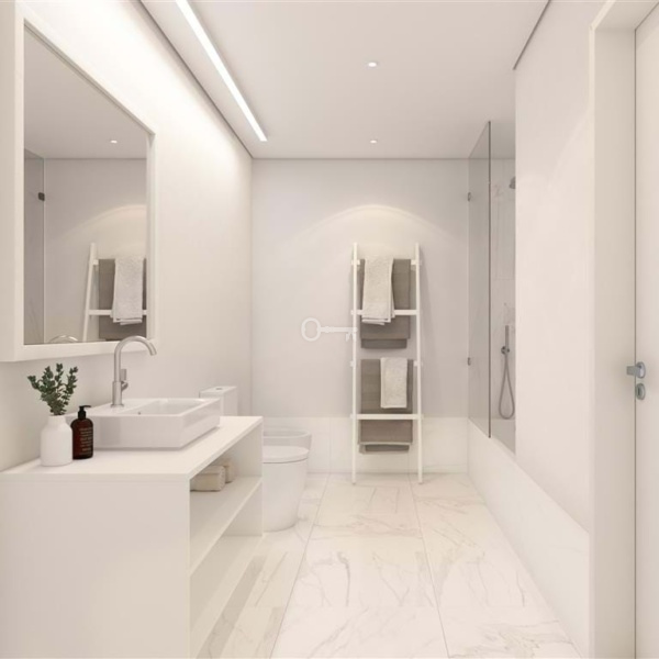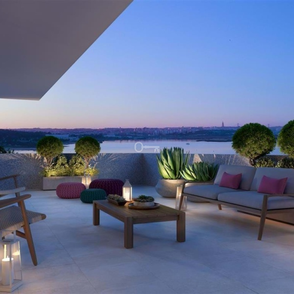 3 bedroom apartment with 127 sqm, brand new, with 2 parking spaces, a terrace with 64 sqm and 2 balconies with 2 and 1 sqm, in the Colina do Outeiro, a modern and elegant gated community marked by a resort atmosphere and by the contemporary architecture featuring large areas and plenty of natural light, designed by the renowned architecture studio S+A, in Seixal. In this new gated community, it will also be possible to enjoy other amenities, such as parking spaces for cars and bikes, storage room, gym, childrens playground, playing field, gardens and communal swimming pool. With a riverfront of 14 km, the Colina do Outeiro is the perfect choice for those looking for a quiet life, with all the safety, comfort, quality in close contact with nature and just a few minutes from Lisbon.