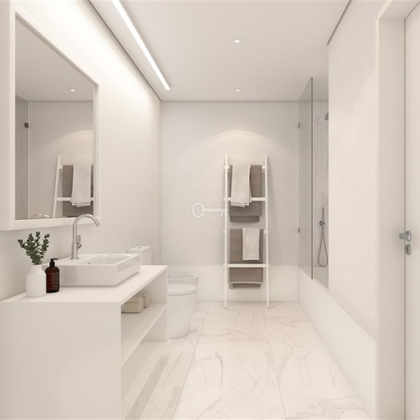 3 bedroom apartment with 128 sqm, brand new, with 2 parking spaces, a terrace with 126 sqm and 2 balconies of 2 and 1 sqm, in the Colina do Outeiro, a modern and elegant gated community marked by a resort atmosphere and by the contemporary architecture featuring large areas and plenty of natural light, designed by the renowned architecture studio S+A, in Seixal. In this new gated community, it will also be possible to enjoy other amenities, such as parking spaces for cars and bikes, storage room, gym, childrens playground, playing field, gardens and communal swimming pool. With a riverfront of 14 km, the Colina do Outeiro is the perfect choice for those looking for a quiet life, with all the safety, comfort, quality in close contact with nature and just a few minutes from Lisbon.
