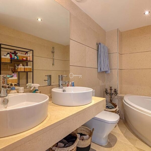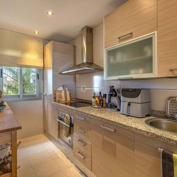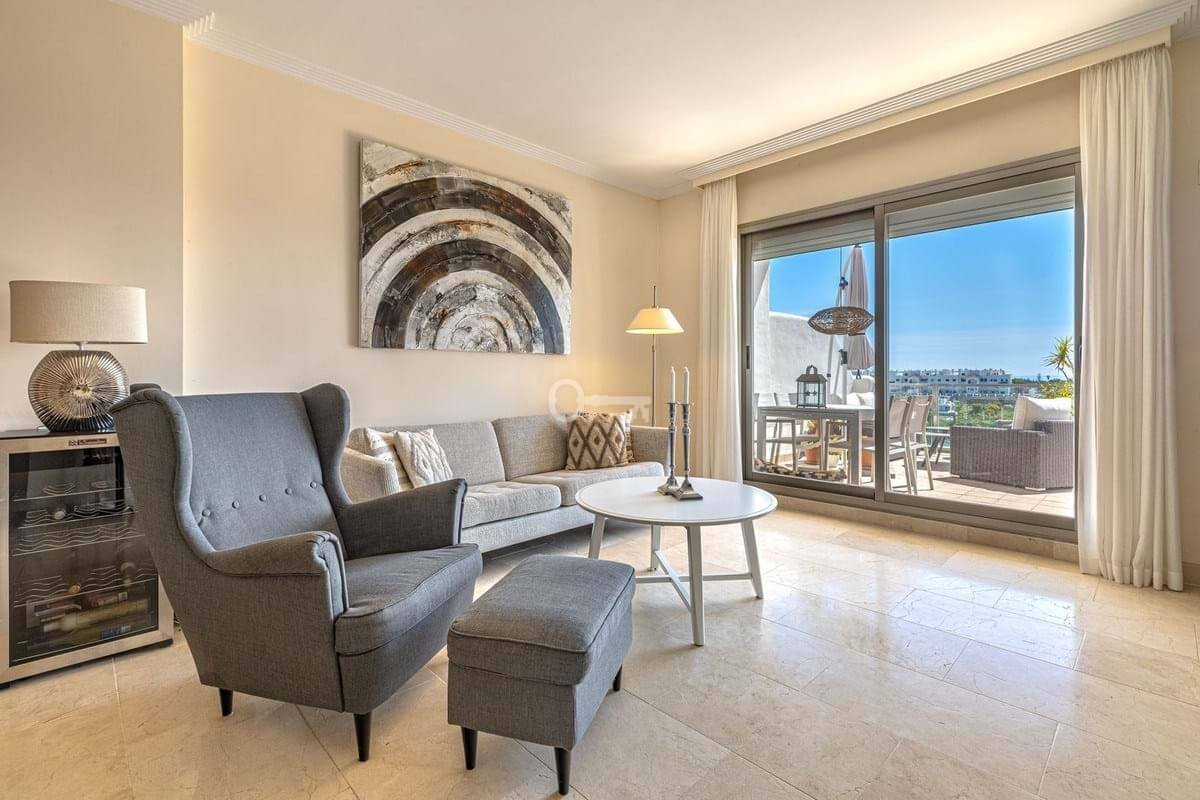 This bright and well-designed home in Resina Golf offers an attractive location in a calm and green setting. Upon entering, you are welcomed by an open-plan living room with large windows that provide excellent natural light and a spacious feel. From here, you access the generous, sun-drenched terrace, which serves as a natural extension of the homeperfect for both relaxing and socializing, with views over greenery and the sea.