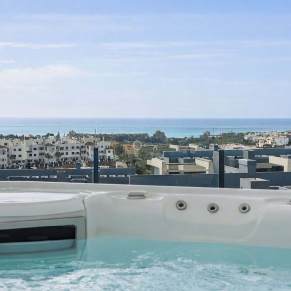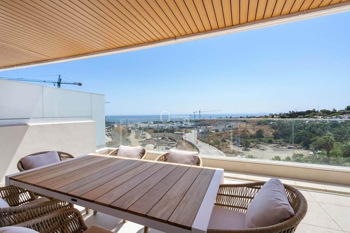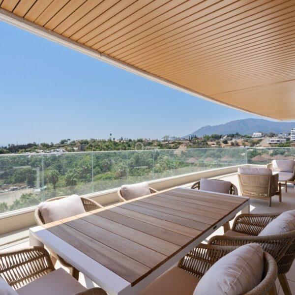 This contemporary two-bedroom, two-bathroom apartment is situated in the sought-after area of Selwo, Estepona East, Malaga. Boasting a generous built area of 212m², including a spacious 100m² terrace, the property offers panoramic sea, country, pool, and street views. Designed for modern living, the apartment is presented in excellent condition and is fully furnished, making it ready for immediate occupation.